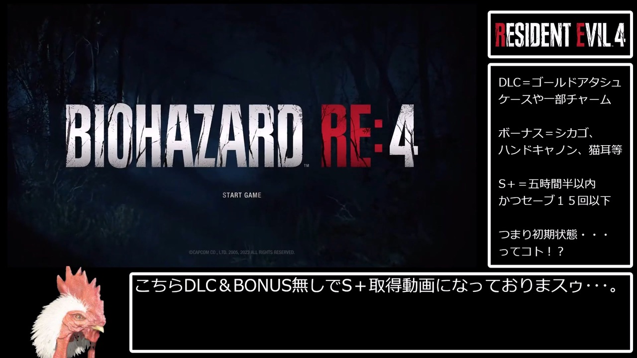 ※(この動画はタイムアタックですがちょっと急いだ攻略程度で、最速を目指したTAやRTA動画では)ないです。動画が環境上暗めになっているのでご了承ください。<br><br>2023年なので初投稿です。<br><br>PS5でプレイしてます。プロフェッショナルS+の条件はIGT5:30以内とセーブ15回以内。<br>トロコン後「(シカゴ無双じゃ)なんかたんねぇよなぁ・・・」と思い、難易度プロフェッショナルで素潜りS+目指したところクリアできたので、折角だから動画にしました。扉抜け等グリッチも未使用です。<br><br>参考にはなるかどうかはわかりません。<br><br>最高難易度素潜りがこんなに楽しいのはRE:2以来でウレシイ・・・ウレシイ・・・。<br>RE:2もTAしたけどクソザコナメクジの腕前では無限武器が限界でしたわよ。<br>RE:3のインフェルノ?なんのこったよ(すっとぼけ)<br><br>他に面白い動画はイッパイイッパイ雄一郎だし、もっと参考になる動画も多いと思うけどま、多少はね?<br>それにしてもbiim編集は想像以上に大変ですねぇ・・・失踪せずに最後まで投稿、しよう!(戒め<br><br>前の穴⇒ないです 後ろの穴⇒<a href="https://www.nicovideo.jp/watch/sm42078360" class="watch">sm42078360</a><br><br>追記:ファッ!?ウーン・・・なんだこの数字たまげたなぁ。身内の攻略用作るついでだったので1か2くらいだと思っていたのですが(困惑)。辺境の動画まで足を運んでくれてアリシャス!改めてbiim兄貴とそのリスペクト動画たちのブランド力を思い知らされるゾ。<br>再生、コメント、いいねに広告までしてくれた兄貴姉貴たちありがとうございます。マイペースながら投稿して行きますので気長にお待ちください。<br><br>広告はprat3動画末尾にて掲載しております。