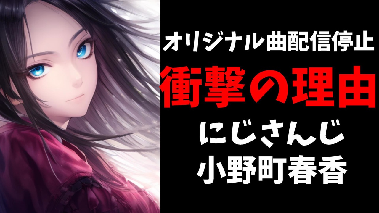 2023年4月13日、にじさんじ公式ツイッターより小野町春香のオリジナル楽曲の配信を停止にいたった理由が説明されました。<br><br>配信停止の曲はYouTubeでなら視聴可能のようです<br>【original】New-ageChallenger【にじさんじ/小野町春香】<br><a href="https://youtu.be/CUP8j_iYMFU" target="_blank" rel="noopener nofollow">https://youtu.be/CUP8j_iYMFU</a><br><br>サムネイルと背景はAIイメージやフリーイラストです<br><br>引用<br><a href="https://twitter.com/nijisanji_app/status/1646430539216482304" target="_blank" rel="noopener nofollow">https://twitter.com/nijisanji_app/status/1646430539216482304</a><br><a href="https://open.talentio.com/r/1/c/ichikara-inc/pages/63734" target="_blank" rel="noopener nofollow">https://open.talentio.com/r/1/c/ichikara-inc/pages/63734</a><br><br>Youtube <a href="https://www.youtube.com/@V_Virgin_Mary" target="_blank" rel="noopener nofollow">https://www.youtube.com/@V_Virgin_Mary</a><br>twitter <a href="https://twitter.com/V_Virgin_Mary" target="_blank" rel="noopener nofollow">https://twitter.com/V_Virgin_Mary</a><br><br>使用素材<br>高品質なフリー動画素材 - Pixabay <a href="https://pixabay.com/ja/videos" target="_blank" rel="noopener nofollow">https://pixabay.com/ja/videos</a>