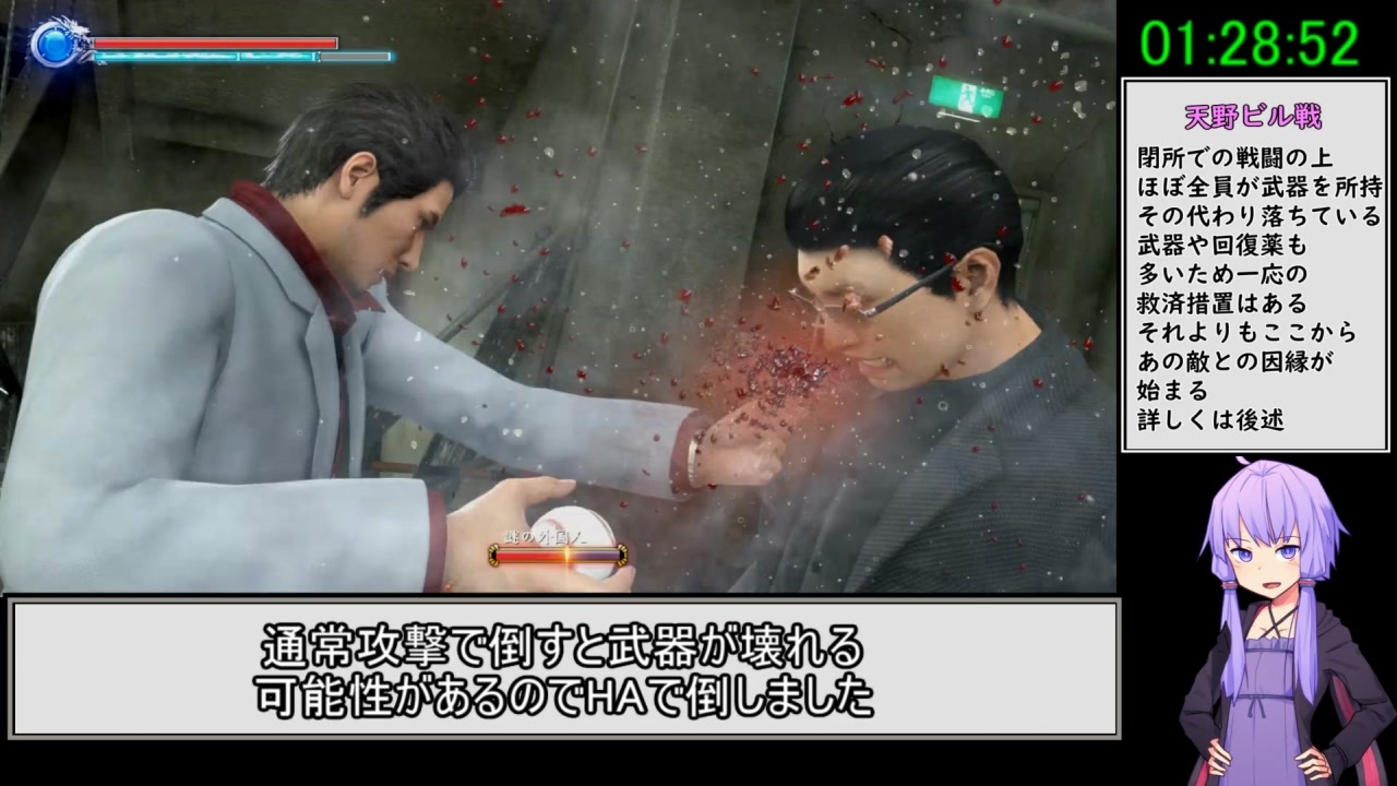 編集していてトラウマが再発したので初投稿です。<br> 今回は本編終了後におまけ動画をつけていますので<br> お時間ある方は見てみてください。<br> RTAのエンコードをAviutilで行うと大抵失敗するのはなんでなんだろう(2日かかった)<br> <br> <span style="font-size: 16px;">【6章~7章まで】</span><br><br>・計測開始 新規セーブデータ作成完了後~ラスボスを倒した際の取得経験値が表示された瞬間<br>・使用ソフト 龍が如く極2 ダウンロード版<br>・プラットフォーム PS4CHU-2100AB02<br><br> <span style="font-size: 18px;">次回作→【龍が如く3実況プレイ】<a href="https://www.nicovideo.jp/watch/sm42214644" class="watch">sm42214644</a></span><br> <br><span style="font-size: 16px;"> 前回<a href="https://www.nicovideo.jp/watch/sm42065614" class="watch">sm42065614</a> 次回<a href="https://www.nicovideo.jp/watch/sm42105125" class="watch">sm42105125</a><br> 縛り内容→<a href="https://www.nicovideo.jp/watch/sm42041664" class="watch">sm42041664</a><br> マイリスト <a href="https://www.nicovideo.jp/mylist/75008110" target="_blank" rel="noopener">mylist/75008110</a><br> Youtube版<a href="https://www.youtube.com/watch?v=lqMM-u2uxf8" target="_blank" rel="noopener nofollow">https://www.youtube.com/watch?v=lqMM-u2uxf8</a></span><br><br><br><span style="color: #ff0000; font-size: 18px;"><strong>投稿者は無印→0→極2とプレイしています。次作以降「ストーリー」のネタバレは遠慮ください</strong></span><br>