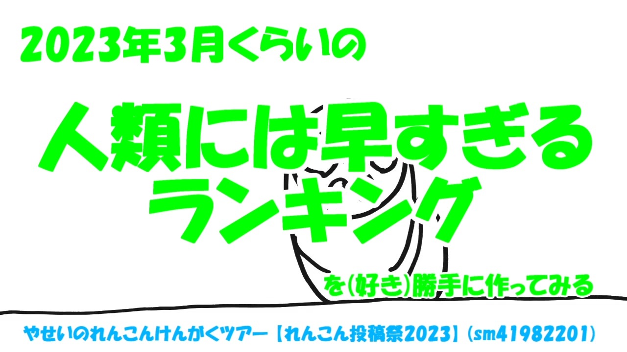 | 番号 | 総合順位 | ポイント | ジャンル順位 | カテゴリ | 再生順位 | 再生数 | コメント順位 | コメント数 | マイリスト順位 | マイリスト数 | いいね順位 | いいね数 |