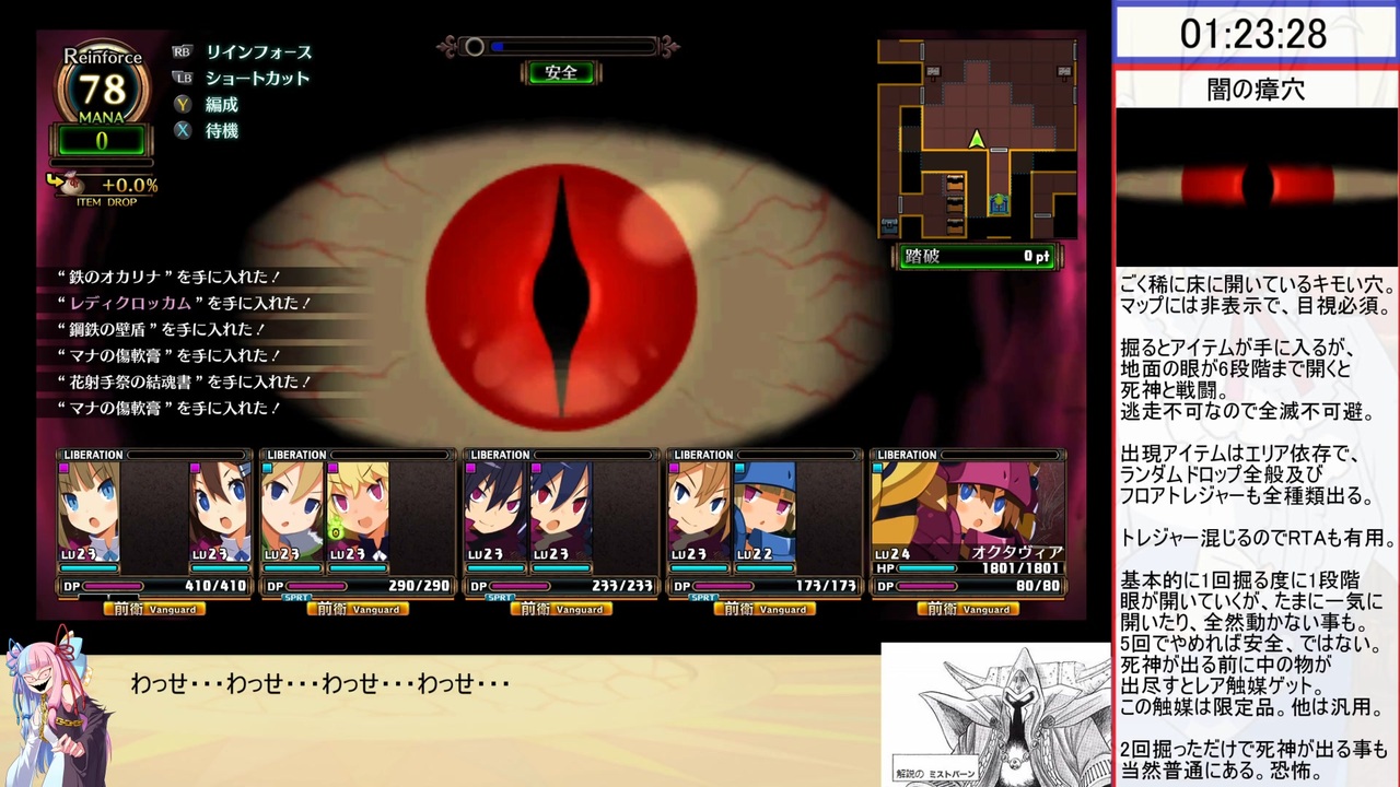 簡易コメ返し<br><br>Q.何!?アラバスタと言えば花崗岩の事ではないのか!?(うろ覚え)<br>A.雪花石の事ですよ<br><br>Q.親だったら1でも妥協してた<br>A.1だけどまあいいや(幻聴)<br> 正直1でも問題なかった事は編集中に判明しました<br><br>Q.性獣ムゥもう許せるゾオイ!<br>A.だめです<br><br>Q.サワーハニーほんとひで<br> シロイハナほんとひで<br>A.ひで<br><br>Q.チョコドングリと株券はクリア後だっけ?あれはマジでブン投げそうになったわ<br>A.間違えて株券売ってません?自力入手は1枚あれば後は依頼で揃いますよ(なおドングリ)<br><br>Q.お魚とお馬さんがクッソ強かった記憶<br> ベルムドンが強すぎる<br>A.そこなんだよなぁ....本編流用データでは勝てませんでしたので<br><br>前回の広告者様<br><br>四暗刻 さん エックス さん よし さん ベットン さん かなぎ さん パラゴン さん 音沙汰無し さん kid824314 さん はしなぎ さん ばなな さん DF4B2 さん しゃくれーん さん y.y さん ミヤジー さん reseple さん すい さん 坂東ディー さん 井之頭五郎 さん はすきーはすきー さん oak さん nanana さん ぁぷた さん 道端 さん ああああああ さん ワディ さん<br><br>広告ありがとうございます!!<br><br>前><a href="https://www.nicovideo.jp/watch/sm42037899" class="watch">sm42037899</a><br>次><a href="https://www.nicovideo.jp/watch/sm42173347" class="watch">sm42173347</a><br><br>走ったRTA<br><a href="https://www.nicovideo.jp/mylist/69986578" target="_blank" rel="noopener">mylist/69986578</a><br><br>ついったー><a href="https://twitter.com/tNK3ob36cqRwyJE" target="_blank" rel="noopener nofollow">https://twitter.com/tNK3ob36cqRwyJE</a><br>普段はMTGの動画を投稿しています><a href="https://www.nicovideo.jp/mylist/40093606" target="_blank" rel="noopener">mylist/40093606</a><br><br>©Nippon Ichi Software, Inc.
