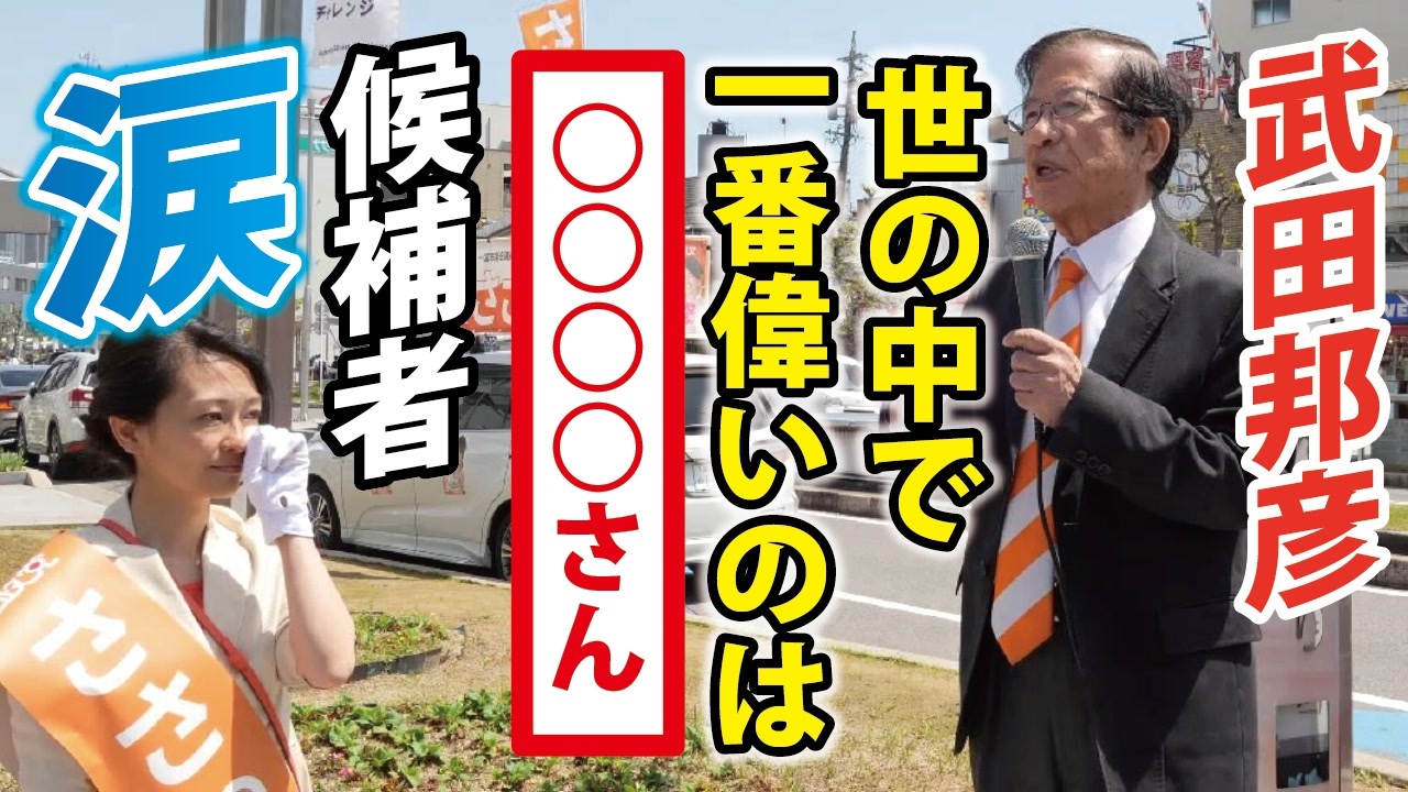令和5年4月17日 愛知県一宮市にて<br><br>この動画は投稿者が現地で撮影したものを<br>編集し公開しています。<br><br>弁士<br>・武田邦彦先生<br>・ささ のりな 一宮市議会議員候補(参政党)<br><br>―――――――――――――――――――――――――――――――<br><br>❑4月10日発売予定「世界を欺いた〇〇〇〇〇〇〇」(宝島社新書)<br><a href="https://amzn.to/3ymDfgr" target="_blank" rel="noopener nofollow">https://amzn.to/3ymDfgr</a><br>鳥集徹(著) 闇のダディ(著) 藤江成光(著)←私<br><br>―――――――――――――――――――――――――――――――<br><br>❑新しい動画サイト「真の日本人増加計画」始めました!<br><a href="https://nicochannel.jp/fujie/" target="_blank" rel="noopener nofollow">https://nicochannel.jp/fujie/</a><br>(ニコニコチャンネル+)<br><br><br>❏藤江の活動を支援していただける方向け<br>【藤江支援口座】のご案内<br>住信SBIネット銀行 ミカン支店(店番号103)<br>口座番号 3107694<br>口座名義 フジエ マサミツ<br><br>――――――――――――――――――――――――――――――<br><br>日本の人口増加を目指す男、藤江です!【メインチャンネル】<br><a href="https://www.youtube.com/c/JINKOUZOUKA/" target="_blank" rel="noopener nofollow">https://www.youtube.com/c/JINKOUZOUKA/</a><br><br>地域と日本の存続のためニ!【藤江2ndチャンネル】<br><a href="https://www.youtube.com/channel/UCfBh4rv5UT7D-qR6KsoZrsA" target="_blank" rel="noopener nofollow">https://www.youtube.com/channel/UCfBh4rv5UT7D-qR6KsoZrsA</a><br><br>今こそ!三千年の底力【藤江3rdチャンネル】<br><a href="https://www.youtube.com/channel/UC5Yrsm8-X8nZj4uKgvE7CBw" target="_blank" rel="noopener nofollow">https://www.youtube.com/channel/UC5Yrsm8-X8nZj4uKgvE7CBw</a><br><br>四海兄弟【藤江4thチャンネル】<br><a href="https://www.youtube.com/channel/UCiyJNO57quj80Ysy7nOABvA" target="_blank" rel="noopener nofollow">https://www.youtube.com/channel/UCiyJNO57quj80Ysy7nOABvA</a><br><br>五穀豊穣【藤江5thチャンネル】<br><a href="https://www.youtube.com/channel/UCptMJCoKYghfew5tDzoEqHQ" target="_blank" rel="noopener nofollow">https://www.youtube.com/channel/UCptMJCoKYghfew5tDzoEqHQ</a><br><br>六根清浄【藤江6thチャンネル】<br><a href="https://www.youtube.com/@FUJIE6th" target="_blank" rel="noopener nofollow">https://www.youtube.com/@FUJIE6th</a><br><br>藤江のTwitter<br><a href="https://twitter.com/JINKOUZOUKA_jp" target="_blank" rel="noopener nofollow">https://twitter.com/JINKOUZOUKA_jp</a><br><br>藤江のニコニコ動画<br><a href="https://www.nicovideo.jp/user/5457748" target="_blank" rel="noopener nofollow">https://www.nicovideo.jp/user/5457748</a>