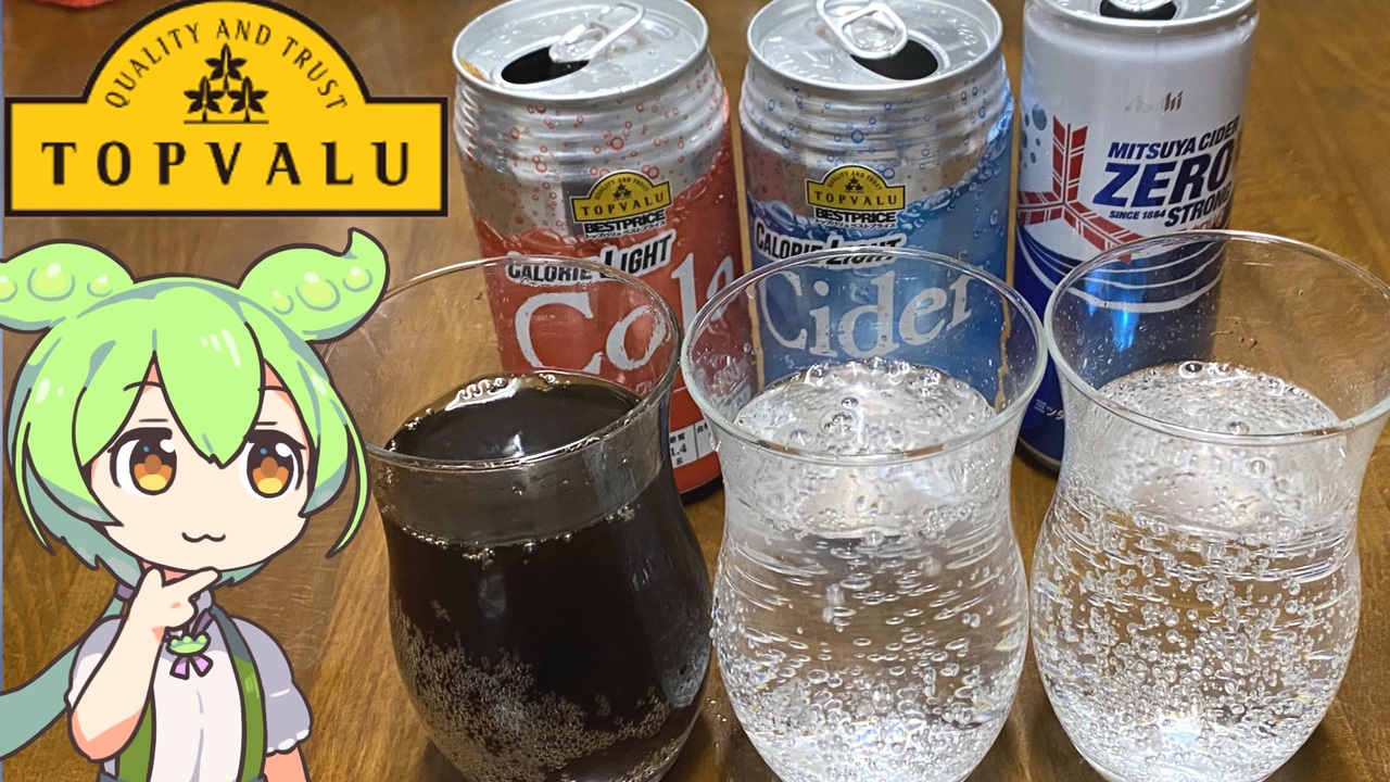 1本30円(350ml)の黄トプバの低カロリー飲料を買ってきました。<br><br>【参考】<br>サイダーカロリーライト<br><a href="https://www.topvalu.net/items/detail/4901810381289/" target="_blank" rel="noopener nofollow">https://www.topvalu.net/items/detail/4901810381289/</a><br>コーラカロリーライト<br><a href="https://www.topvalu.net/items/detail/4901810381265/" target="_blank" rel="noopener nofollow">https://www.topvalu.net/items/detail/4901810381265/</a><br>三ツ矢サイダーゼロストロング 缶<br><a href="https://www.asahiinryo.co.jp/products/carbonated/mitsuyacderzerostrong/2CKG1.html" target="_blank" rel="noopener nofollow">https://www.asahiinryo.co.jp/products/carbonated/mitsuyacderzerostrong/2CKG1.html</a><br><br>【使用した素材】(※敬称略)<br>(合成音声)VOICEVOX/ずんだもん/四国めたん<br><a href="https://voicevox.hiroshiba.jp/" target="_blank" rel="noopener nofollow">https://voicevox.hiroshiba.jp/</a><br>(立ち絵)坂本アヒル<br><a href="https://seiga.nicovideo.jp/seiga/im10788496" target="_blank" rel="noopener">im10788496</a>/<a href="https://seiga.nicovideo.jp/seiga/im10791276" target="_blank" rel="noopener">im10791276</a><br>(楽曲)甘茶の音楽工房/「楽しい麦畑」<br><a href="https://amachamusic.chagasi.com/" target="_blank" rel="noopener nofollow">https://amachamusic.chagasi.com/</a>