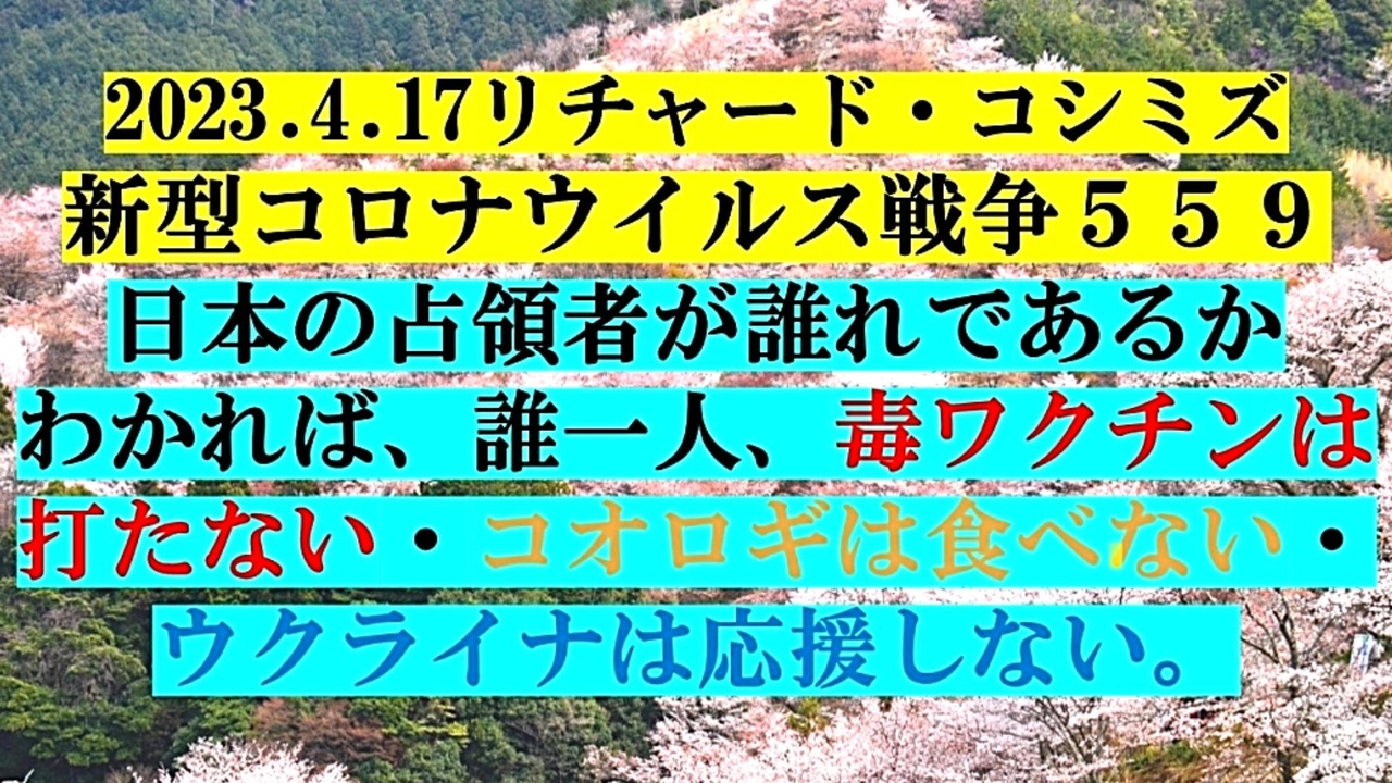 <span style="color: #cc4125;"><strong>「 テーマ : 新型コロナウイルス戦争 559 」</strong></span><br><br><span style="color: #ff0000;"><strong>「『 日本の占領者が誰であるか 』分かれば、『 誰一人 』、『 毒ワクチンは打たない・コオロギは食べない<br> ・ウクライナは応援しない 』」</strong></span><br><br><span style="color: #0000ff;"><strong>「『 イベルメクチン・アビガン・その他コロナ対策 』について、ご意見をお寄せ下さい! 」<br><br> ◐ E-mail:richardkoshimizu@gmail.com</strong></span><br><br><strong>◐「クリエイター・サポート」・「ニコニ広告」・「フォロー」等、ご協力の程宜しくお願い致します。RK</strong><br><br><span style="color: #38761d;"><strong>◐ リチャード・コシミズ 講演会 公式 動画ギャラリー</strong></span><br> <span style="color: #38761d;"><strong><a href="http://www.t-sskk.com/richardkoshimizu/video-gallery/index.html" target="_blank" rel="noopener nofollow">http://www.t-sskk.com/richardkoshimizu/video-gallery/index.html</a><br><br>◐ リチャード・コシミズ 講演会 「 ニコニコ生放送『 LIVE 』」</strong></span><br> <span style="color: #38761d;"><strong><a href="https://bit.ly/3Bx8F5w" target="_blank" rel="noopener nofollow">https://bit.ly/3Bx8F5w</a><br><br>◐ リチャード・コシミズ 公式 ブログ</strong></span><br> <span style="color: #38761d;"><strong><a href="http://08054623210.jugem.jp/" target="_blank" rel="noopener nofollow">http://08054623210.jugem.jp/</a><br><br>◐ リチャード・コシミズ 公式 ホームページ<br> <a href="http://richardkoshimizu.boo.jp/" target="_blank" rel="noopener nofollow">http://richardkoshimizu.boo.jp/</a><br><br>◐ リチャード・コシミズ 公式 Twitter</strong></span><br> <span style="color: #38761d;"><strong><a href="https://twitter.com/rickoshimizu" target="_blank" rel="noopener nofollow">https://twitter.com/rickoshimizu</a></strong></span><br>