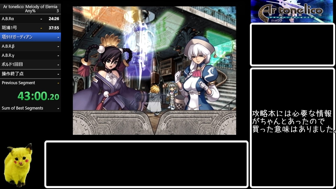 シリーズ9弾目はアルトネリコ1です<br>Aviutlでインタレース消そうとすると一部の画像が乱れるので<br>ゆっくりムービーメーカーのまま上げても良いっすかね?<br><br>ネモ到達~初ダイブ前まで<br><br>PS2実機 PSH-55000<br>連射コン無し<br><br>録画環境<br>キャプチャソフト amarecoTV4.11<br>録画ソフト OBS29.0.2<br><br>前回 <a href="https://www.nicovideo.jp/watch/sm42072446" class="watch">sm42072446</a><br>次回 <a href="https://www.nicovideo.jp/watch/sm42136927" class="watch">sm42136927</a><br>これまで走ったRTA Part1リンク <a href="https://www.nicovideo.jp/mylist/71360071" target="_blank" rel="noopener">mylist/71360071</a><br>無編集つべ版リンク <a href="https://www.youtube.com/watch?v=jHEH7IC8voE&list=PLC30iyC8BxoAuSeTPDRQD4SQQ3cZmjZ4g&index=9&t=13s&ab_channel=nekochu" target="_blank" rel="noopener nofollow">https://www.youtube.com/watch?v=jHEH7IC8voE&list=PLC30iyC8BxoAuSeTPDRQD4SQQ3cZmjZ4g&index=9&t=13s&ab_channel=nekochu</a>