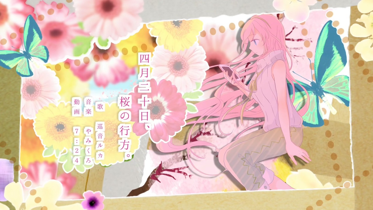 『泣くな、後悔なんてするもんか』<br><br><br>-----------<br>はじめまして、もしくはいつもさんきゅー愛してるぜ、<br>やみくろです。<br><br><br>KARENT"春のうた"特集のために制作した曲です。<br>特集ページはこちら→<a href="https://karent.jp/special/spring23" target="_blank" rel="noopener nofollow">https://karent.jp/special/spring23</a><br><br>感情が忙しい、女の子のとある一日のお話です。<br>曲出来上がって投稿しようかなって考えた時に<br>ピアプロにあった7:24さんの過去の絵が合いそうだなって思い浮かんで、<br>あれ使わせて~って頼んだら、<br>リメイクしてくれた上に動画まで作ってくれました。<br>春めいてます。かわいい。<br><br>リメイク前とリメイク後の一枚絵はこちらから見れます!!見て!!<br>↓<br><a href="https://www.pixiv.net/artworks/107356129" target="_blank" rel="noopener nofollow">https://www.pixiv.net/artworks/107356129</a><br><br>コメント・いいね!・フォローなど、<br>応援よろしくお願いします。<br><br>-----------<br>コメントフィルター:<br><br>はな と打つと❀が沢山でます!<br><br>-----------<br>『四月二十日、桜の行方。』<br>■vocal<br>巡音ルカ<br><br>■music<br>やみくろ<br> twitter(<a href="https://twitter.com/yamichrome)" target="_blank" rel="noopener nofollow">https://twitter.com/yamichrome)</a><br><br>■illustration/movie<br>7:24<br> twitter(<a href="https://twitter.com/7_24inukai)" target="_blank" rel="noopener nofollow">https://twitter.com/7_24inukai)</a><br> pixiv(<a href="https://www.pixiv.net/users/264650)" target="_blank" rel="noopener nofollow">https://www.pixiv.net/users/264650)</a><br><br>■オケ<br>検討中<br><br>■歌詞<br>Youtube固定コメントにあります。↓<br><a href="https://www.youtube.com/watch?v=-I24ggWHk6w" target="_blank" rel="noopener nofollow">https://www.youtube.com/watch?v=-I24ggWHk6w</a>