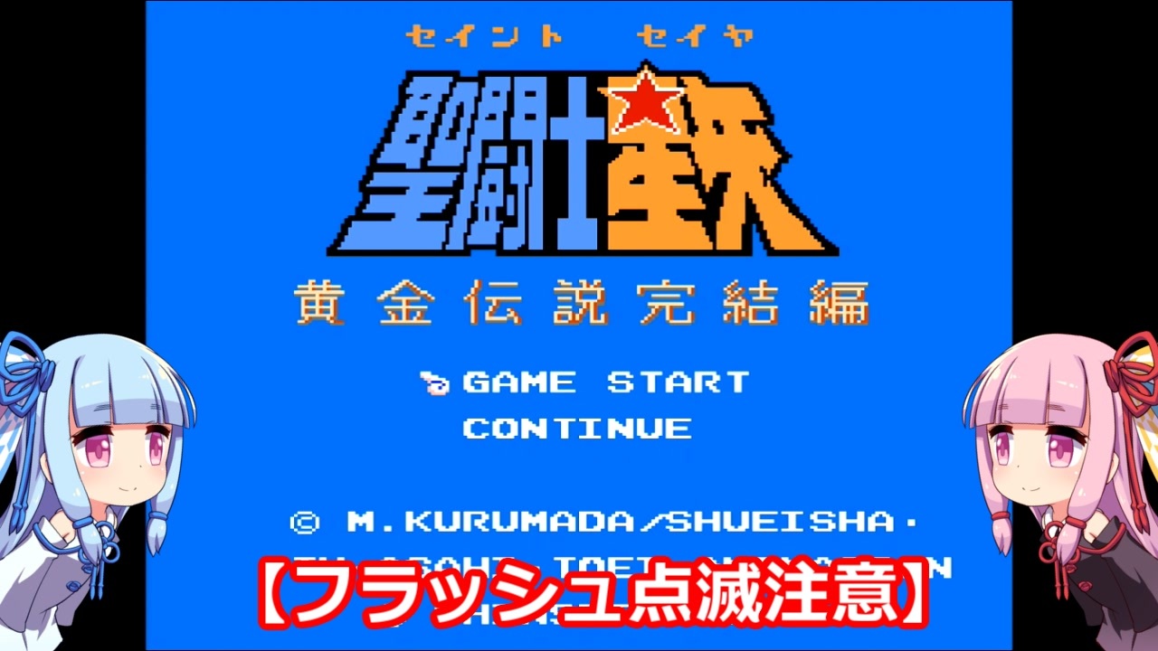 フラッシュが点滅するシーンがありますので、ご視聴の際はご注意願います。<br><br>FCソフト、聖闘士星矢黄金伝説完結編をプレイしました。<br>黄金十二宮、白羊宮編です。<br>システム周りは前作よりも簡略化されて分かり易く、<br>原作再現出来ているので、ファンゲームとしては優秀であると思います。<br>ただ、原作を知らないと苦難が待っています。<br><br>お借りした素材<br>blueberry様 <a href="https://seiga.nicovideo.jp/seiga/im6561508" target="_blank" rel="noopener">im6561508</a> <br><br>琴葉姉妹Part1マイリスト⇒<a href="https://www.nicovideo.jp/mylist/74721174" target="_blank" rel="noopener">mylist/74721174</a><br>前作の黄金伝説 ⇒<a href="https://www.nicovideo.jp/watch/sm41667752" class="watch">sm41667752</a><br>完結編 ♯1白羊宮 ⇒ここ