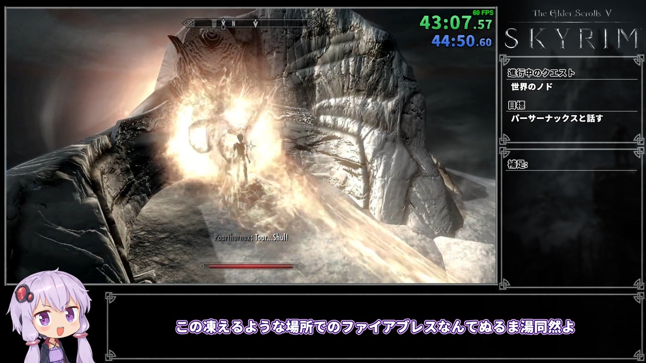 <strong>グリッチを使わないで</strong>メインクエストの完了を目指すRTAです。<br>旧世界記録である自身の1:06:55(IGT)の記録にて解説を行います。※倍速編集あり<br>RTAでの記録は1時間9分14秒です。<br><br>Part 1: <a href="https://www.nicovideo.jp/watch/sm42107712" class="watch">sm42107712</a><br><br>YouTube版: <a href="https://youtu.be/hMS64RUZ-XA" target="_blank" rel="noopener nofollow">https://youtu.be/hMS64RUZ-XA</a><br><br>無編集版: <a href="https://youtu.be/qjb6yDVU0_g" target="_blank" rel="noopener nofollow">https://youtu.be/qjb6yDVU0_g</a><br><br>◯<strong>カテゴリー: Glitchless Main Quest, PC<br><br>◯ランキング表</strong><br><a href="https://www.speedrun.com/skyrim?h=Glitchless_Main_Quest-PC&x=9kvpvekg-7891rq9n.rqv09g6l" target="_blank" rel="noopener nofollow">https://www.speedrun.com/skyrim?h=Glitchless_Main_Quest-PC&x=9kvpvekg-7891rq9n.rqv09g6l</a><br>上記リンクの"Show rules"という項目に全カテゴリー共通、及びグリッチレスカテゴリー限定のルールが記載されています。<br><br>◯<strong>紹介したテクニックのチュートリアル動画</strong><br>・Ratway Skip<br><a href="https://www.youtube.com/watch?v=xpKRlV7nU10" target="_blank" rel="noopener nofollow">https://www.youtube.com/watch?v=xpKRlV7nU10</a><br>・Peace Council Skip (STFU Skip)<br><a href="https://www.youtube.com/watch?v=5P7LZbcbhxM" target="_blank" rel="noopener nofollow">https://www.youtube.com/watch?v=5P7LZbcbhxM</a><br><br>◯<strong>グリッチのチュートリアル集</strong><br><a href="https://www.speedrun.com/skyrim/guides/2iwv6" target="_blank" rel="noopener nofollow">https://www.speedrun.com/skyrim/guides/2iwv6</a><br>基本的にこれをやったらアウトなやつ<br><br>◯<strong>追加の説明</strong><br>前回からRTAが2分も縮まっていますが、オートセーブを全部切っただけで1分近く短縮されています。<br>セーブ&ロード中は計測されないのでIGTには影響しません。