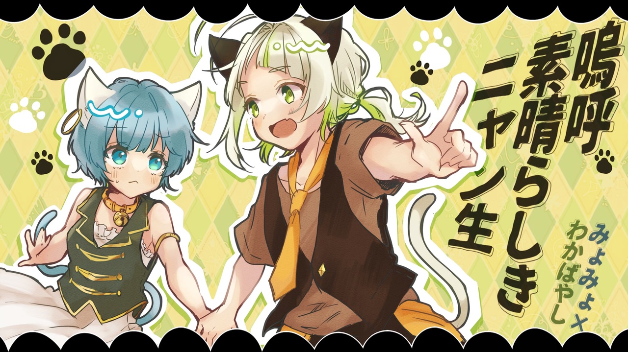 みょみょと申します。お友達のわかばやしさんと一緒にねこになりました。<br>わかみょの歌ってみた 第6弾!<br>是非最後まで聴いてください!よろしくお願いいたします!<br><br>コメント「に」で「にゃんにゃんにゃん!」になるぞ!<br><br>╋━━━━━━━<br> 歌ってみたCollection Nem部門特別賞受賞ありがとうございます!<br> サブスク配信されました↓<br><a href="https://nex-tone.link/A00120577" target="_blank" rel="noopener nofollow">https://nex-tone.link/A00120577</a><br>ぜひ聴いてね!<br> ━━━━━━━╋<br><br><br>◇Original 『嗚呼、素晴らしきニャン生』 / Nem 様(<a href="https://www.nicovideo.jp/watch/sm14990051" class="watch">sm14990051</a>)<br><br>◇Mix / Enc 四(azma)様(<a href="https://www.nicovideo.jp/user/62671058" target="_blank" rel="noopener">user/62671058</a>)<br>Twitter : <a href="https://twitter.com/azma_music" target="_blank" rel="noopener nofollow">https://twitter.com/azma_music</a><br><br><br>◆Vocal <br>《<span style="color: #ffff00;"><strong>レン猫担当</strong></span><strong> </strong>》<span style="color: lime;">わかばやし</span> (<a href="https://www.nicovideo.jp/mylist/70354653" target="_blank" rel="noopener">mylist/70354653</a>)<br>Twitter : <a href="https://twitter.com/waka_nana0413" target="_blank" rel="noopener nofollow">https://twitter.com/waka_nana0413</a><br>Youtube : <a href="https://www.youtube.com/channel/UCHPgbavPOlo38wgvEouSZrA" target="_blank" rel="noopener nofollow">https://www.youtube.com/channel/UCHPgbavPOlo38wgvEouSZrA</a><br>サムネイラストもわかばやしだそ!天才!<br><br>《<span style="color: #00ff00;"><strong>GUMI猫担当</strong></span>》<span style="color: #00bfff;">みょみょ </span> (<a href="https://www.nicovideo.jp/mylist/39446980" target="_blank" rel="noopener">mylist/39446980</a>)<br>Twitter : <a href="https://twitter.com/25myomyo25" target="_blank" rel="noopener nofollow">https://twitter.com/25myomyo25</a><br>Youtube : <a href="https://www.youtube.com/channel/UCbegq9cIEElh7f_d7T0j_Xg" target="_blank" rel="noopener nofollow">https://www.youtube.com/channel/UCbegq9cIEElh7f_d7T0j_Xg</a><br><br><br>YouTube版:歌コレ後!<br><br>Twitterフォローお待ちしています。<br>マイリスコメントいいねなど応援して頂けると泣いて喜びます…<br><br><br>わか×みょこちらもどうぞ!↓<br>カフネ <a href="https://www.nicovideo.jp/watch/sm38837995" class="watch">sm38837995</a><br>大黒天 <a href="https://www.nicovideo.jp/watch/sm39388858" class="watch">sm39388858</a><br>くうになる <a href="https://www.nicovideo.jp/watch/sm40152813" class="watch">sm40152813</a><br>絶対敵対メチャキライヤー <a href="https://www.nicovideo.jp/watch/sm40713305" class="watch">sm40713305</a><br>マトリョシカ <a href="https://www.nicovideo.jp/watch/sm41212898" class="watch">sm41212898</a><br><br><br>前←すずめ(<a href="https://www.nicovideo.jp/watch/sm40638146" class="watch">sm40638146</a>)┃次→coming soon...
