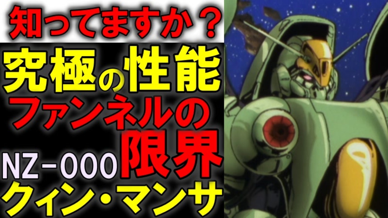 【ネオジオン最強のMS】NZ-000クィン・マンサ。キュベレイの後継機、象徴として作られた究極の性能、その凄さと弱点を徹底解説【機動戦士ガンダム】<br><br>ZZガンダムに登場するMS、NZ-000クィン・マンサを解説しながら、良く見ると全然キュベレイじゃないのではなどを解説、考察する動画です。<br><br>今回は解説が多めです。<br><br>色々凄くてもスピードが無いと全部台無し論は結構色々なところで言われる気がします。<br>ドラゴンボールの悟空とかセルとか・・・。<br><br>大型化に苦言を呈してる動画なのに17分を超える大型動画になっているのは結局のところ言うは易しということなのかもしれません・・・。<br>10分以内にまとめたいといつも思っているのですが・・・。<br>何かを切り捨てないと、クィン・マンサになっちゃいますね。<br><br><br>質問、などありましたらこちらにも<br><a href="https://twitter.com/@i4S0LHspdgzBTor" target="_blank" rel="noopener nofollow">https://twitter.com/@i4S0LHspdgzBTor</a><br><br>清見元康名義でたいあっぷ、小説家になろう、カクヨムなどに投稿しています。<br>もし良ければ応援お願いしますm(_ _)m<br><a href="https://tieupnovels.com/user/GariGari" target="_blank" rel="noopener nofollow">https://tieupnovels.com/user/GariGari</a><br><a href="https://mypage.syosetu.com/953815/" target="_blank" rel="noopener nofollow">https://mypage.syosetu.com/953815/</a><br><a href="https://kakuyomu.jp/users/GariD/works" target="_blank" rel="noopener nofollow">https://kakuyomu.jp/users/GariD/works</a><br><br>現在の最新作(短編コメディ):<br>何度繰り返してもギロチン送りにされる悪役令嬢は閃いた『敵対する者全員可愛いアイドルにしてしまおう!』アイドルギルドマスターに私はなる!<br><a href="https://ncode.syosetu.com/n2478hi/" target="_blank" rel="noopener nofollow">https://ncode.syosetu.com/n2478hi/</a><br><br>以前の作品(短編シリアス):<br>転生した厄災の大魔女はやがて聖女と呼ばれる<br><a href="https://ncode.syosetu.com/n0827ha/" target="_blank" rel="noopener nofollow">https://ncode.syosetu.com/n0827ha/</a><br><br>A.I.VOICE:結月ゆかり<br>VOICEVOX:ずんだもん<br><br>使用させていただいたずんだもん:<br>ずんだもん mini Deluxe(立ち絵) ver1.2<br><a href="https://seiga.nicovideo.jp/seiga/im10794509" target="_blank" rel="noopener nofollow">https://seiga.nicovideo.jp/seiga/im10794509</a><br><br><br>いつも広告、コメントありがとうございます。<br>励みになりますm(_ _)m<br>