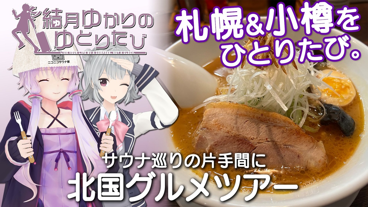 <span style="color: #9900ff; font-size: 24px;">こんなときだから、どか食いしよう。</span><br>ベホイミの無計画で気楽な一人旅の様子を観察する<strong>「MMD旅行バラエティ」第7回。</strong><br>札幌小樽のドーミーイン3つと「ニコーリフレ」「ガーデンズキャビン」等を巡ってきました。<br>その<strong>ついでに</strong>行った美味しい北国グルメを紹介します!<br><span style="color: #ff00ff;">サムネの味噌ラーメンは何処だよ!と思った人は「いいね!」を押してください</span><br><br><span style="color: #0000ff;"><strong><結月ゆかりのゆとりたび</strong></span><span style="color: #0000ff;"><a href="https://www.nicovideo.jp/mylist/71080293" target="_blank" rel="noopener">mylist/71080293</a></span><span style="color: #0000ff;"><strong>></strong></span><br>前→長野の温泉宿で貸切サウナ。渋温泉「春蘭の宿 さかえや」<a href="https://www.nicovideo.jp/watch/sm41728647" class="watch">sm41728647</a><br>次→福岡&佐賀を超満喫。「福岡サウナ&グルメ旅」「御船山楽園ホテル」<a href="https://www.nicovideo.jp/watch/sm43121850" class="watch">sm43121850</a><br><span style="color: #0000ff;"><strong>短編旅行動画「まちあるき」シリーズもよろしく!</strong></span><span style="color: #0000ff;">→<a href="https://www.nicovideo.jp/mylist/75790185" target="_blank" rel="noopener">mylist/75790185</a></span><br><br><strong>制作:ベホイミProject(<a href="https://www.nicovideo.jp/mylist/27336" target="_blank" rel="noopener">mylist/27336</a>)</strong><br>Twitter:<a href="https://twitter.com/BehoimiP" target="_blank" rel="noopener nofollow">https://twitter.com/BehoimiP</a><br>YouTube「T.A.S魔理沙ちゃんねる」:<a href="https://www.youtube.com/c/TasMarisa" target="_blank" rel="noopener nofollow">https://www.youtube.com/c/TasMarisa</a><br>欲しい物:<a href="https://www.amazon.jp/hz/wishlist/ls/22MGTQ3BVV39B?ref_=wl_share" target="_blank" rel="noopener nofollow">https://www.amazon.jp/hz/wishlist/ls/22MGTQ3BVV39B?ref_=wl_share</a>