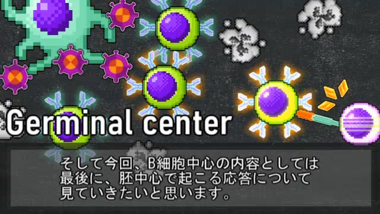 大変お待たせしました。前回動画から6か月が経過してしまいましたが、何とか出来上がりました。<br> 今回はクラススイッチ組み換えに体細胞高頻度突然変異と、分子・細胞生物学的な話題が多めになりました。おかげで免疫学以外の本が必要になったり、多くの素材を描く必要があったりとだいぶ手こずりました。その関係でDNA修復についても調べることになったのですが、なかなか面白かったので、何かの機会に動画化出来たらなあ……と思ってみたり。<br><br>【Twitter】→ <a href="https://twitter.com/immunoamateur" target="_blank" rel="noopener nofollow">https://twitter.com/immunoamateur</a><br>【第1回】→ <a href="https://www.nicovideo.jp/watch/sm33686747" class="watch">sm33686747</a> 免疫学の基本<br>【前回】→ <a href="https://www.nicovideo.jp/watch/sm41028756" class="watch">sm41028756</a> B細胞の活性化<br>【次回】→ <a href="https://www.nicovideo.jp/watch/sm43296278" class="watch">sm43296278</a> 免疫応答の抑制<br>【投稿動画】 → <a href="https://www.nicovideo.jp/mylist/63388345" target="_blank" rel="noopener">mylist/63388345</a><br>