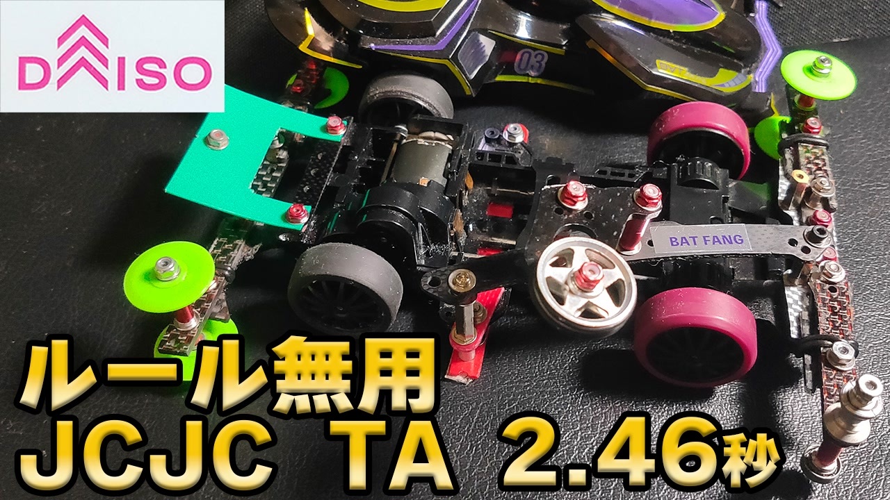 ルール無用jcjcタイムアタックの動画です。ダイソーのポケットカーのバットファングを使用し挑戦しました<br><br>前回の動画はこちらから<br>超偏重心ローラーはコーナーを強力に加速させる【ルール無用JCJCタイムアタック】イタリアンスペシャル 2号<br><a href="https://www.nicovideo.jp/watch/sm41851847" target="_blank" rel="noopener nofollow">https://www.nicovideo.jp/watch/sm41851847</a><br><br><br>ツイッター<br><a href="https://twitter.com/kagamimocheese" target="_blank" rel="noopener nofollow">https://twitter.com/kagamimocheese</a><br>支援物資<br><a href="https://www.amazon.jp/hz/wishlist/ls/1INU2H09H0754?ref_=wl_share" target="_blank" rel="noopener nofollow">https://www.amazon.jp/hz/wishlist/ls/1INU2H09H0754?ref_=wl_share</a><br><br>この動画はゆっくりムービーメーカーで作成されています。<br><br>動画に使用している音声は<br><br>しろ役として VOICEVOX:ずんだもん<br>みかん役として VOICEVOX:四国めたん<br><br>を使用して制作しました。