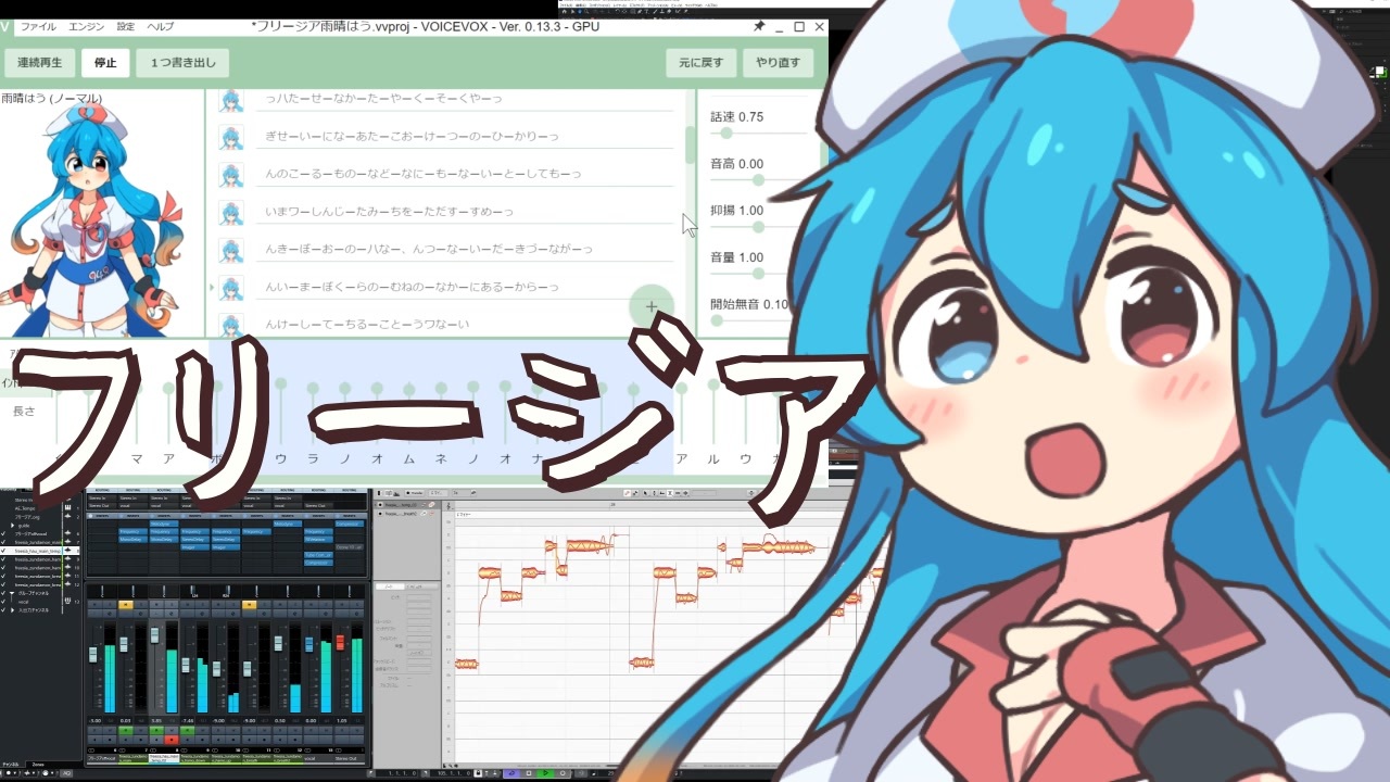 なーんか静かですねぇ<br><br>――――<br>■ 原曲<br>フリージア / Uru<br>『機動戦士ガンダム 鉄血のオルフェンズ』第2期エンディングテーマ<br><a href="https://youtu.be/Sqx2KT2hbOc" target="_blank" rel="noopener nofollow">https://youtu.be/Sqx2KT2hbOc</a><br>――――<br>■カラオケ音源<br>生歌風カラオケ屋<br><a href="https://youtu.be/hPtGeZPr5e8" target="_blank" rel="noopener nofollow">https://youtu.be/hPtGeZPr5e8</a><br>――――<br>■音声合成ソフトウェア<br>VOICEVOX<br><a href="https://voicevox.hiroshiba.jp" target="_blank" rel="noopener nofollow">https://voicevox.hiroshiba.jp</a><br>――――<br>■ 立ち絵素材<br>雨晴はう立ち絵素材<br><a href="https://seiga.nicovideo.jp/seiga/im10880094" target="_blank" rel="noopener nofollow">https://seiga.nicovideo.jp/seiga/im10880094</a><br>