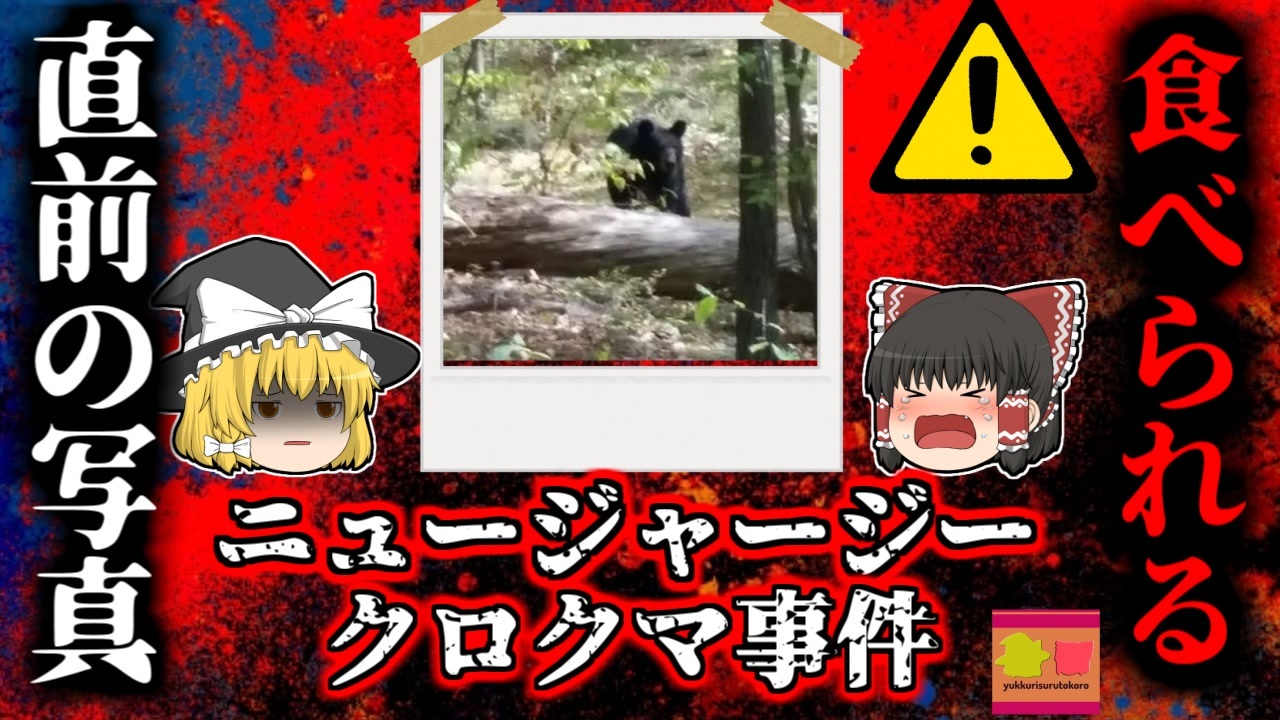 <a href="#" class="seekTime" data-seekTime="00:00" onclick="seekNicoPlayer('#00:00'); return false;">#00:00</a> 冒頭挨拶<br><a href="#" class="seekTime" data-seekTime="00:29" onclick="seekNicoPlayer('#00:29'); return false;">#00:29</a> 視聴上の注意<br><a href="#" class="seekTime" data-seekTime="1:16" onclick="seekNicoPlayer('#1:16'); return false;">#1:16</a> 本編開始<br><a href="#" class="seekTime" data-seekTime="1:47" onclick="seekNicoPlayer('#1:47'); return false;">#1:47</a> ニュージャージー州の衝撃ニュース<br><a href="#" class="seekTime" data-seekTime="3:00" onclick="seekNicoPlayer('#3:00'); return false;">#3:00</a> 動物好きのAさん<br><a href="#" class="seekTime" data-seekTime="3:44" onclick="seekNicoPlayer('#3:44'); return false;">#3:44</a> 車で保護区の森へ<br><a href="#" class="seekTime" data-seekTime="4:03" onclick="seekNicoPlayer('#4:03'); return false;">#4:03</a> 後方に黒いクマが…<br><a href="#" class="seekTime" data-seekTime="5:01" onclick="seekNicoPlayer('#5:01'); return false;">#5:01</a> 車を降りて撮影していると<br><a href="#" class="seekTime" data-seekTime="5:38" onclick="seekNicoPlayer('#5:38'); return false;">#5:38</a> パニック<br><a href="#" class="seekTime" data-seekTime="6:45" onclick="seekNicoPlayer('#6:45'); return false;">#6:45</a> 三人だけが脱出し警察へ<br><a href="#" class="seekTime" data-seekTime="7:06" onclick="seekNicoPlayer('#7:06'); return false;">#7:06</a> 発見、その後<br><a href="#" class="seekTime" data-seekTime="8:16" onclick="seekNicoPlayer('#8:16'); return false;">#8:16</a> 残された写真<br><a href="#" class="seekTime" data-seekTime="8:56" onclick="seekNicoPlayer('#8:56'); return false;">#8:56</a> ニュージャージー州で初の事例<br><a href="#" class="seekTime" data-seekTime="10:14" onclick="seekNicoPlayer('#10:14'); return false;">#10:14</a> 熊を見つけてしまった時の対処方法<br><a href="#" class="seekTime" data-seekTime="13:47" onclick="seekNicoPlayer('#13:47'); return false;">#13:47</a> より詳しい情報は各自治体のサイトなどで<br><br><br><br><br>今回紹介するのは、以前から多くのリクエストがありました「ニュージャージー州クロクマ襲撃事件」です。<br>アメリカ合衆国東部、大西洋沿岸部にある、<br>ニュージャージー州の自然保護区「アプシャワ自然保護区」で、一人の男性と、その男性を捕食する熊が発見されました。<br>彼は国内の大学に通う学生で、この日は友人たちと共に、車に乗ってこの保護区でハイキングを楽しんでいましたが、その最中にクマを発見。<br>彼らはクマの写真を撮ろうと車を降り、数十メートルの距離まで近づいていましたが、クマが突然彼らに向けて襲ってきました。<br>Aさんたちはこれでパニックになり、蜘蛛の子を散らしたように、バラバラに逃げてしまいました。<br>その最中、Aさんは倒木に躓いてしまい、靴が脱げて倒れこんでしまいました。彼はほかの三人に、「いいからそのまま走れ!」と叫び、三人は車へと一目散に走り、森を抜けて警察に通報。<br>通報を受けた警察は、捜索隊を組織し、Aさんの大規模捜索を開始。<br>そして、彼はクマと共に発見されましたが、すでに絶命しており・・・<br><br>引用・出展・参考文献<br>AFPBB News<br><a href="https://ishort.ink/xeHQ" target="_blank" rel="noopener nofollow">https://ishort.ink/xeHQ</a><br>アメリカクロクマ | 神戸どうぶつ王国<br><a href="https://ishort.ink/su6o" target="_blank" rel="noopener nofollow">https://ishort.ink/su6o</a><br>アメリカクロクマ (アメリカグマ) - 動物図鑑<br><a href="https://ishort.ink/VKbG" target="_blank" rel="noopener nofollow">https://ishort.ink/VKbG</a><br>HanaCell ニュージャージー州 ~アメリカ50州大解剖<br><a href="https://ishort.ink/G8Tp" target="_blank" rel="noopener nofollow">https://ishort.ink/G8Tp</a><br>知床財団 もしもヒグマに出会ってしまったら<br><a href="https://ishort.ink/Kybm" target="_blank" rel="noopener nofollow">https://ishort.ink/Kybm</a><br>その他視聴者提供資料など<br>