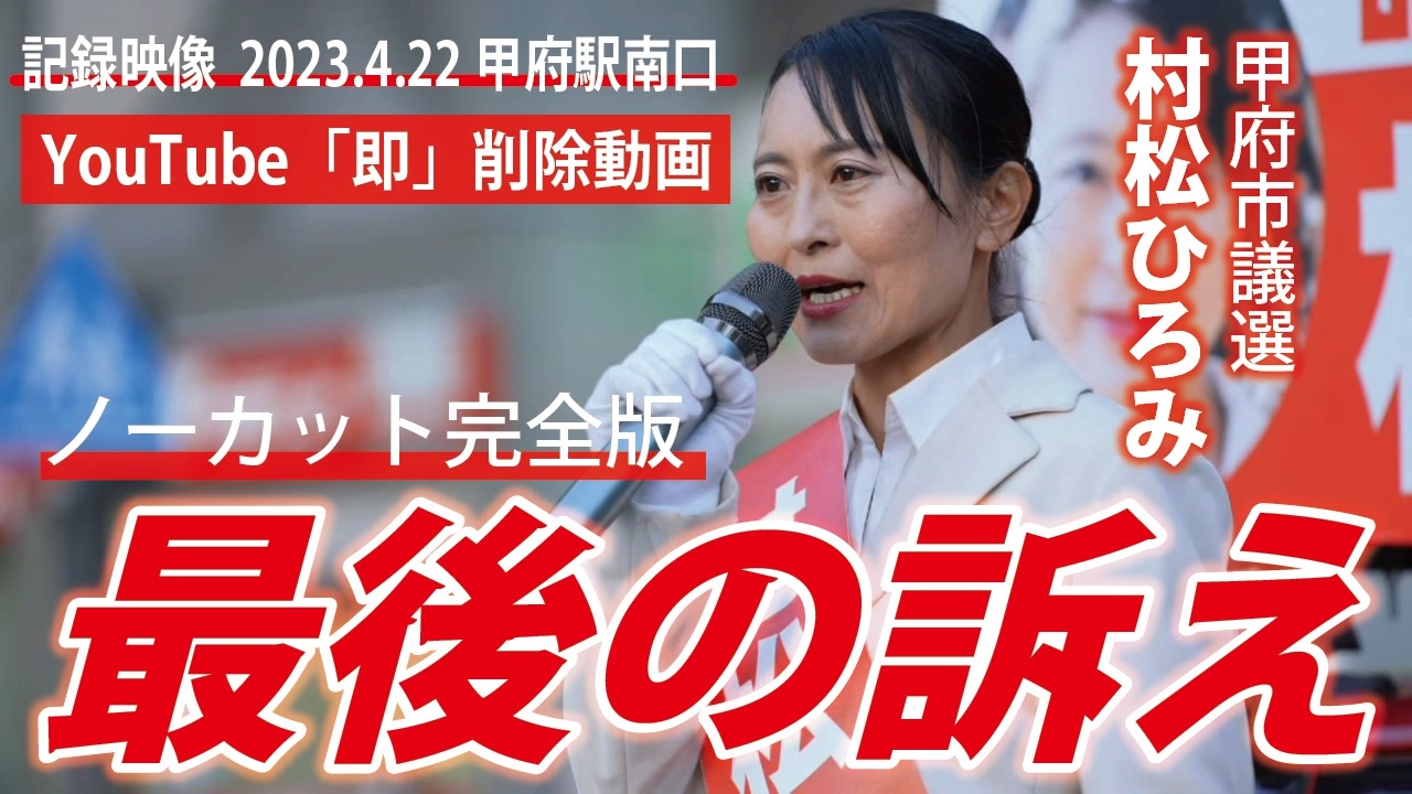 令和5年4月22日 甲府駅南口にて<br>この動画は投稿者が現地で撮影したものです。<br><br>❑高画質版(ニコニコチャンネル+)<br><a href="https://nicochannel.jp/fujie/video/smJaWYapbzBU8KX7SbEJXi7L" target="_blank" rel="noopener nofollow">https://nicochannel.jp/fujie/video/smJaWYapbzBU8KX7SbEJXi7L</a><br><br>―――――――――――――――――――――――――――――――<br><br>❑4月10日発売予定「世界を欺いた〇〇〇〇〇〇〇」(宝島社新書)<br><a href="https://amzn.to/3ymDfgr" target="_blank" rel="noopener nofollow">https://amzn.to/3ymDfgr</a><br>鳥集徹(著) 闇のダディ(著) 藤江成光(著)←私<br><br>―――――――――――――――――――――――――――――――<br><br>❑新しい動画サイト「真の日本人増加計画」始めました!<br><a href="https://nicochannel.jp/fujie/" target="_blank" rel="noopener nofollow">https://nicochannel.jp/fujie/</a><br>(ニコニコチャンネル+)<br><br><br>❏藤江の活動を支援していただける方向け<br>【藤江支援口座】のご案内<br>住信SBIネット銀行 ミカン支店(店番号103)<br>口座番号 3107694<br>口座名義 フジエ マサミツ<br><br>――――――――――――――――――――――――――――――<br><br>日本の人口増加を目指す男、藤江です!【メインチャンネル】<br><a href="https://www.youtube.com/c/JINKOUZOUKA/" target="_blank" rel="noopener nofollow">https://www.youtube.com/c/JINKOUZOUKA/</a><br><br>地域と日本の存続のためニ!【藤江2ndチャンネル】<br><a href="https://www.youtube.com/channel/UCfBh4rv5UT7D-qR6KsoZrsA" target="_blank" rel="noopener nofollow">https://www.youtube.com/channel/UCfBh4rv5UT7D-qR6KsoZrsA</a><br><br>今こそ!三千年の底力【藤江3rdチャンネル】<br><a href="https://www.youtube.com/channel/UC5Yrsm8-X8nZj4uKgvE7CBw" target="_blank" rel="noopener nofollow">https://www.youtube.com/channel/UC5Yrsm8-X8nZj4uKgvE7CBw</a><br><br>四海兄弟【藤江4thチャンネル】<br><a href="https://www.youtube.com/channel/UCiyJNO57quj80Ysy7nOABvA" target="_blank" rel="noopener nofollow">https://www.youtube.com/channel/UCiyJNO57quj80Ysy7nOABvA</a><br><br>五穀豊穣【藤江5thチャンネル】<br><a href="https://www.youtube.com/channel/UCptMJCoKYghfew5tDzoEqHQ" target="_blank" rel="noopener nofollow">https://www.youtube.com/channel/UCptMJCoKYghfew5tDzoEqHQ</a><br><br>六根清浄【藤江6thチャンネル】<br><a href="https://www.youtube.com/@FUJIE6th" target="_blank" rel="noopener nofollow">https://www.youtube.com/@FUJIE6th</a><br><br>藤江のTwitter<br><a href="https://twitter.com/JINKOUZOUKA_jp" target="_blank" rel="noopener nofollow">https://twitter.com/JINKOUZOUKA_jp</a><br><br>藤江のニコニコ動画<br><a href="https://www.nicovideo.jp/user/5457748" target="_blank" rel="noopener nofollow">https://www.nicovideo.jp/user/5457748</a>