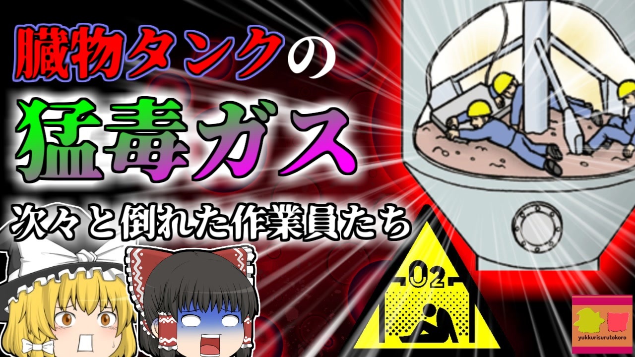 <a href="#" class="seekTime" data-seekTime="00:00" onclick="seekNicoPlayer('#00:00'); return false;">#00:00</a> 冒頭挨拶<br><a href="#" class="seekTime" data-seekTime="00:24" onclick="seekNicoPlayer('#00:24'); return false;">#00:24</a> 視聴上の注意<br><a href="#" class="seekTime" data-seekTime="1:02" onclick="seekNicoPlayer('#1:02'); return false;">#1:02</a> 本編開始<br><a href="#" class="seekTime" data-seekTime="1:24" onclick="seekNicoPlayer('#1:24'); return false;">#1:24</a> 鶏肉の加工工場<br><a href="#" class="seekTime" data-seekTime="2:43" onclick="seekNicoPlayer('#2:43'); return false;">#2:43</a> 飼料用臓物タンクの異変<br><a href="#" class="seekTime" data-seekTime="4:00" onclick="seekNicoPlayer('#4:00'); return false;">#4:00</a> Bさんが取りに行くことに<br><a href="#" class="seekTime" data-seekTime="4:09" onclick="seekNicoPlayer('#4:09'); return false;">#4:09</a> 被災<br><a href="#" class="seekTime" data-seekTime="4:30" onclick="seekNicoPlayer('#4:30'); return false;">#4:30</a> 救助者も次々と…<br><a href="#" class="seekTime" data-seekTime="5:09" onclick="seekNicoPlayer('#5:09'); return false;">#5:09</a> 「硫化水素中毒」「酸素欠乏症」<br><a href="#" class="seekTime" data-seekTime="8:45" onclick="seekNicoPlayer('#8:45'); return false;">#8:45</a> いくつかの原因<br><a href="#" class="seekTime" data-seekTime="10:10" onclick="seekNicoPlayer('#10:10'); return false;">#10:10</a> 必要だった対策<br><br><br><br><br>今回紹介するのは、食肉加工上場で起きた事例です。<br>この工場では、鶏を加工し、食肉の状態にして梱包、販売しており、その加工工程で出た、鶏の頭部や臓物といった、非・可食部の飼料加工も行われており、それらを一時保存する、ストックタンクで膨張が起こり、蓋が飛び出してしまうといった騒ぎが起きていました。<br>この報告を受けた工場長「Aさん」は、現場責任者の「Bさん」と、保安員一名と共に、問題のタンクを調査しました。<br>タンク上部に設置されていた、鉄製の蓋はガスによって押し出され、タンク内部に落下していました。<br>そこでBさんが内部に入り、蓋を拾い上げることに。<br>ですが、開口部から体を入れた瞬間、彼は瞬時に意識を失い、タンク内部に倒れこんでしまいました。<br>彼を救助しようと、保安員、Aさんも続けて中に入りましたが、同じように意識を喪失。<br>なんと、三人連続で意識を失い、タンク内部に墜落してしまいました。<br><br>何故、彼らは瞬時に意識を失ってしまっていたのでしょうか?<br><br>引用・出展・参考文献<br>全国食肉事業協同組合連合会 <br>お肉が食卓に届くまで<br><a href="https://ishort.ink/7y2Q" target="_blank" rel="noopener nofollow">https://ishort.ink/7y2Q</a><br>三和食鶏グループ 食肉加工工場について<br><a href="https://ishort.ink/RR2u" target="_blank" rel="noopener nofollow">https://ishort.ink/RR2u</a><br>畜産情報ネットワーク 肉用鶏の一生<br><a href="https://ishort.ink/wpjx" target="_blank" rel="noopener nofollow">https://ishort.ink/wpjx</a><br>厚生労働量 職場のあんぜんサイト<br><a href="https://ishort.ink/GQnH" target="_blank" rel="noopener nofollow">https://ishort.ink/GQnH</a><br><a href="https://ishort.ink/xCsL" target="_blank" rel="noopener nofollow">https://ishort.ink/xCsL</a><br>理研計器㈱ 知っておきたいガスのこと<br><a href="https://ishort.ink/AjmH" target="_blank" rel="noopener nofollow">https://ishort.ink/AjmH</a><br>その他視聴者提供資料など<br><br />※この動画は過去の事件を知り、現在でも同じことが発生する危険性を再認識、関与しないように促すための動画であり、視聴者を扇動、動揺を誘うためのコンテンツではありません。<br><br>ご要望にお応えして、メンバーシップの開設を行いました。<br>下記URLからも登録可能ですので、ご興味がある方は是非ご参加ください。<br><a href="https://www.youtube.com/channel/UCcT5a1J7XJW7CLYI2RKl4pw/join" target="_blank" rel="noopener nofollow">https://www.youtube.com/channel/UCcT5a1J7XJW7CLYI2RKl4pw/join</a><br><br><br>Twitter<br>→<a href="https://twitter.com/yukkurisurutoko" target="_blank" rel="noopener nofollow">https://twitter.com/yukkurisurutoko</a><br><br>取り急ぎ、簡易的にですがマイリストを作りました。<br>【ゆっくり解説】事故・事件関係紹介リスト <br><a href="https://www.nicovideo.jp/mylist/71034319" target="_blank" rel="noopener nofollow">https://www.nicovideo.jp/mylist/71034319</a><br>【ゆっくり解説】放射線系事故<br><a href="https://www.nicovideo.jp/mylist/71034368" target="_blank" rel="noopener nofollow">https://www.nicovideo.jp/mylist/71034368</a><br>【ゆっくり解説】鉄道系事故・事件関連<br><a href="https://www.nicovideo.jp/mylist/71034379" target="_blank" rel="noopener nofollow">https://www.nicovideo.jp/mylist/71034379</a>