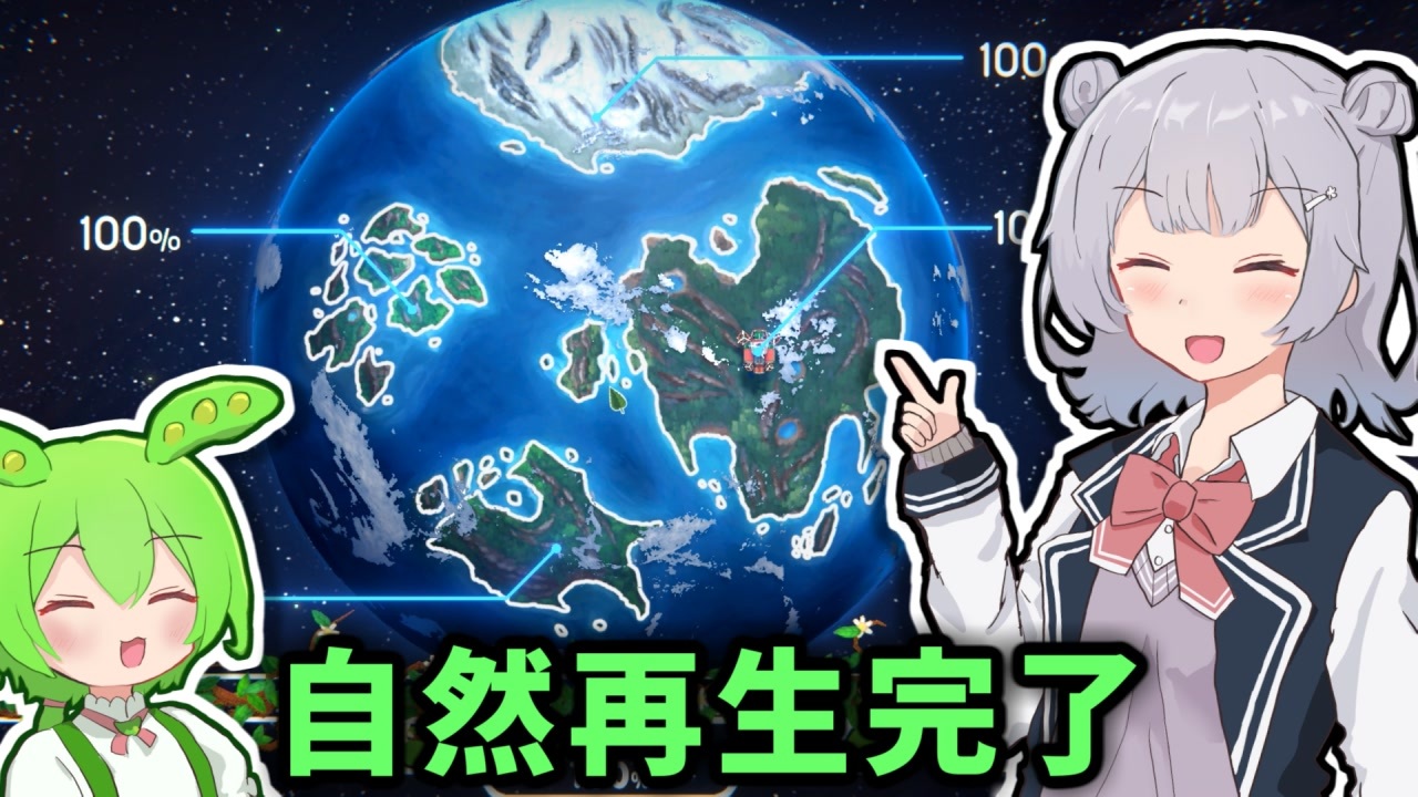 進行率100%になったのでこれで終わりです。短いシリーズでしたがご視聴ありがとうございました!!<br><br>=====<br>荒廃した大地を自然豊かな環境に蘇らせるゲームです。六花ちゃんが自然再生に奮闘します。<br><br>前回→<a href="https://www.nicovideo.jp/watch/sm42125898" class="watch">sm42125898</a><br>ほかのやつ→<a href="https://www.nicovideo.jp/mylist/68407699" target="_blank" rel="noopener">mylist/68407699</a><br><br>CV:<br>小春六花(CeVIO AI)<br>ずんだもん(VOICEVOX)<br><br>steamストアページ:<br><a href="https://store.steampowered.com/app/1593030/Terra_Nil/" target="_blank" rel="noopener nofollow">https://store.steampowered.com/app/1593030/Terra_Nil/</a><br />作業報告用のXアカウント→<a href="https://twitter.com/Blueprinted3965" target="_blank" rel="noopener nofollow">https://twitter.com/Blueprinted3965</a>