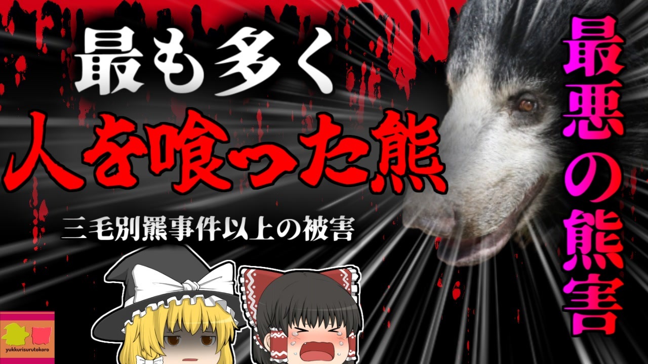 <a href="#" class="seekTime" data-seekTime="00:00" onclick="seekNicoPlayer('#00:00'); return false;">#00:00</a> 冒頭挨拶<br><a href="#" class="seekTime" data-seekTime="00:52" onclick="seekNicoPlayer('#00:52'); return false;">#00:52</a> 視聴上の注意<br><a href="#" class="seekTime" data-seekTime="1:35" onclick="seekNicoPlayer('#1:35'); return false;">#1:35</a> 本編開始<br><a href="#" class="seekTime" data-seekTime="2:03" onclick="seekNicoPlayer('#2:03'); return false;">#2:03</a> 畑荒らし<br><a href="#" class="seekTime" data-seekTime="2:28" onclick="seekNicoPlayer('#2:28'); return false;">#2:28</a> 「ナマケグマ」<br><a href="#" class="seekTime" data-seekTime="4:24" onclick="seekNicoPlayer('#4:24'); return false;">#4:24</a> 繰り返し人里に<br><a href="#" class="seekTime" data-seekTime="4:50" onclick="seekNicoPlayer('#4:50'); return false;">#4:50</a> 豹変したクマ<br><a href="#" class="seekTime" data-seekTime="6:19" onclick="seekNicoPlayer('#6:19'); return false;">#6:19</a> 繰り返し人を襲うように<br><a href="#" class="seekTime" data-seekTime="6:39" onclick="seekNicoPlayer('#6:39'); return false;">#6:39</a> ハンターへの討伐依頼<br><a href="#" class="seekTime" data-seekTime="7:47" onclick="seekNicoPlayer('#7:47'); return false;">#7:47</a> 再び起きた事件<br><a href="#" class="seekTime" data-seekTime="10:09" onclick="seekNicoPlayer('#10:09'); return false;">#10:09</a> 湖の近くで再び…<br><a href="#" class="seekTime" data-seekTime="10:45" onclick="seekNicoPlayer('#10:45'); return false;">#10:45</a> 待ち伏せ作戦<br><a href="#" class="seekTime" data-seekTime="11:43" onclick="seekNicoPlayer('#11:43'); return false;">#11:43</a> 史上最悪の熊害に<br><a href="#" class="seekTime" data-seekTime="12:23" onclick="seekNicoPlayer('#12:23'); return false;">#12:23</a> ナマケグマとインド<br><a href="#" class="seekTime" data-seekTime="13:33" onclick="seekNicoPlayer('#13:33'); return false;">#13:33</a> 日本にも野生の熊は多い<br><a href="#" class="seekTime" data-seekTime="13:52" onclick="seekNicoPlayer('#13:52'); return false;">#13:52</a> 対処方法を知っておこう<br><a href="#" class="seekTime" data-seekTime="15:34" onclick="seekNicoPlayer('#15:34'); return false;">#15:34</a> お互いのために。<br><br>今回紹介するのは、以前から多くのリクエストがありました、「マイソール熊害」です。<br>1957年、インド共和国南西部のとある村ではここ最近、クマに農作物を荒らされるというちょっとした騒動が頻発していました。<br>村人たちは、クマが作物を狙うたびに追い払っていましたが、クマは徐々に人に慣れ始め、恐れなくなっていました。<br>そして、この攻防が何度か続き、ストレスが極限にまで達したクマは、遂に村人の男性を襲ってしまいます。<br>このクマはこれに味を占め、その後なんども住人を襲うようになってしまいます。<br>困り果てた住人は、当時インドで話題になっていた、伝説のハンターにクマの討伐依頼を出し、ハンターはクマの捜索に乗り出しますが、それは失敗に終わってしまいます。<br>そして、犠牲者が増え続け、三度目の捜索に出た時、遂にハンターは目的のクマを発見。<br>湖の近くで野営し、待ち伏せすると、夜中にすぐ近くで地面を掘り起こすような物音が鳴り、ハンターがライトで照らすと、そこには大きなナマケグマが・・・・<br>この熊は「ナマケグマ」という、大きな長い爪を持つ熊で、繰り返し人を襲い12人もの命を奪い、捕食していた熊でした。<br><br>引用・出展・参考文献<br>Wikipedia ナマケグマ Melursus ursinus<br><a href="https://ishort.ink/9BBv" target="_blank" rel="noopener nofollow">https://ishort.ink/9BBv</a><br>Wikipedia カルナータカ州<br><a href="https://ishort.ink/e4ix" target="_blank" rel="noopener nofollow">https://ishort.ink/e4ix</a><br>宮城県 ツキノワグマの被害に遭わないために<br><a href="https://ishort.ink/vEQD" target="_blank" rel="noopener nofollow">https://ishort.ink/vEQD</a><br>TRAFFIC 野生生物調査NGO<br><a href="https://ishort.ink/eTS9" target="_blank" rel="noopener nofollow">https://ishort.ink/eTS9</a><br>NATIONAL HEOGRAPHIC 謎めいたナマケグマの生態<br><a href="https://ishort.ink/wBq8" target="_blank" rel="noopener nofollow">https://ishort.ink/wBq8</a><br><br />※この動画は過去の事件を知り、現在でも同じことが発生する危険性を再認識、関与しないように促すための動画であり、視聴者を扇動、動揺を誘うためのコンテンツではありません。<br><br>ご要望にお応えして、メンバーシップの開設を行いました。<br>下記URLからも登録可能ですので、ご興味がある方は是非ご参加ください。<br><a href="https://www.youtube.com/channel/UCcT5a1J7XJW7CLYI2RKl4pw/join" target="_blank" rel="noopener nofollow">https://www.youtube.com/channel/UCcT5a1J7XJW7CLYI2RKl4pw/join</a><br><br><br>Twitter<br>→<a href="https://twitter.com/yukkurisurutoko" target="_blank" rel="noopener nofollow">https://twitter.com/yukkurisurutoko</a><br><br>取り急ぎ、簡易的にですがマイリストを作りました。<br>【ゆっくり解説】事故・事件関係紹介リスト <br><a href="https://www.nicovideo.jp/mylist/71034319" target="_blank" rel="noopener nofollow">https://www.nicovideo.jp/mylist/71034319</a><br>【ゆっくり解説】放射線系事故<br><a href="https://www.nicovideo.jp/mylist/71034368" target="_blank" rel="noopener nofollow">https://www.nicovideo.jp/mylist/71034368</a><br>【ゆっくり解説】鉄道系事故・事件関連<br><a href="https://www.nicovideo.jp/mylist/71034379" target="_blank" rel="n