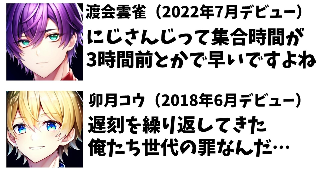 2023年4月14日、にじさんじの卯月コウ君がにじさんじと遅刻と現在の採用基準に関する興味深い話をしていました。<br><br>画像はAIイメージです<br><br>引用<br><a href="https://www.youtube.com/live/PnLwuhq-kzE?feature=share" target="_blank" rel="noopener nofollow">https://www.youtube.com/live/PnLwuhq-kzE?feature=share</a><br><br>Youtube <a href="https://www.youtube.com/@V_Virgin_Mary" target="_blank" rel="noopener nofollow">https://www.youtube.com/@V_Virgin_Mary</a><br>twitter <a href="https://twitter.com/V_Virgin_Mary" target="_blank" rel="noopener nofollow">https://twitter.com/V_Virgin_Mary</a><br><br>使用素材<br>高品質なフリー動画素材 - Pixabay <a href="https://pixabay.com/ja/videos" target="_blank" rel="noopener nofollow">https://pixabay.com/ja/videos</a>