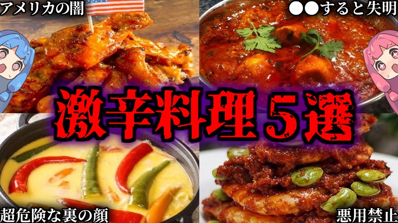 VOICEROIDの琴葉姉妹が世界の激辛料理について解説する雑学動画です。<br>独特な起源や歴史、特徴、種類、作り方、強烈な辛さ、おすすめの食べ方、驚きの味わいなどを紹介します。<br>これからも世界の独特な食べ物や料理を解説していきますので、フォローといいねをお願いします!<br>また、ご感想やご要望、今後投稿して欲しい食品のリクエストなどのコメントもお待ちしております。<br>それでは、琴葉茜と琴葉葵と一緒に激辛すぎるワールドグルメをゆっくり楽しんでください。<br><br>●youtubeチャンネル<br><a href="https://www.youtube.com/@kotonoha-gourmet" target="_blank" rel="noopener nofollow">https://www.youtube.com/@kotonoha-gourmet</a><br><br>●ツイッター<br><a href="https://twitter.com/KotonohaGourmet" target="_blank" rel="noopener nofollow">https://twitter.com/KotonohaGourmet</a><br><br>●インスタグラム<br><a href="https://www.instagram.com/kotonoha_gourmet/" target="_blank" rel="noopener nofollow">https://www.instagram.com/kotonoha_gourmet/</a><br><br>●フェイスブック<br><a href="https://www.facebook.com/KotonohaGourmet/" target="_blank" rel="noopener nofollow">https://www.facebook.com/KotonohaGourmet/</a><br><br>お借りした素材など<br>[立ち絵]<br>坂本アヒル様<br><br>[BGM・効果音・エフェクト等]<br>魔王魂様<br>甘茶の音楽工房様<br>効果音ラボ様<br>Pixabay様<br>動画AC様<br>ニコニ・コモンズ様<br><br>[音声合成ソフト]<br>A.I.VOICE 琴葉 茜・葵<br><br>▼マイリスト色々<br><a href="https://www.nicovideo.jp/user/35565901/mylist" target="_blank" rel="noopener nofollow">https://www.nicovideo.jp/user/35565901/mylist</a><br><br>▼シリーズ色々<br><a href="https://www.nicovideo.jp/user/35565901/series" target="_blank" rel="noopener nofollow">https://www.nicovideo.jp/user/35565901/series</a><br><br>▼関連動画<br>【VOICEROID解説】食べたらヤバい...世界の臭い食べ物4選!<br><a href="https://www.nicovideo.jp/watch/sm41980807" target="_blank" rel="noopener nofollow">https://www.nicovideo.jp/watch/sm41980807</a><br><br>▼前回<br>あまりにも斬新でアメリカンな伝統料理5選【VOICEROID解説】<br><a href="https://www.nicovideo.jp/watch/sm42110036" target="_blank" rel="noopener nofollow">https://www.nicovideo.jp/watch/sm42110036</a><br><br>▼次回<br>【知らないと損!】世界のうまいストリートフード6選【VOICEROID解説】<br><a href="https://www.nicovideo.jp/watch/sm42178194" target="_blank" rel="noopener nofollow">https://www.nicovideo.jp/watch/sm42178194</a>