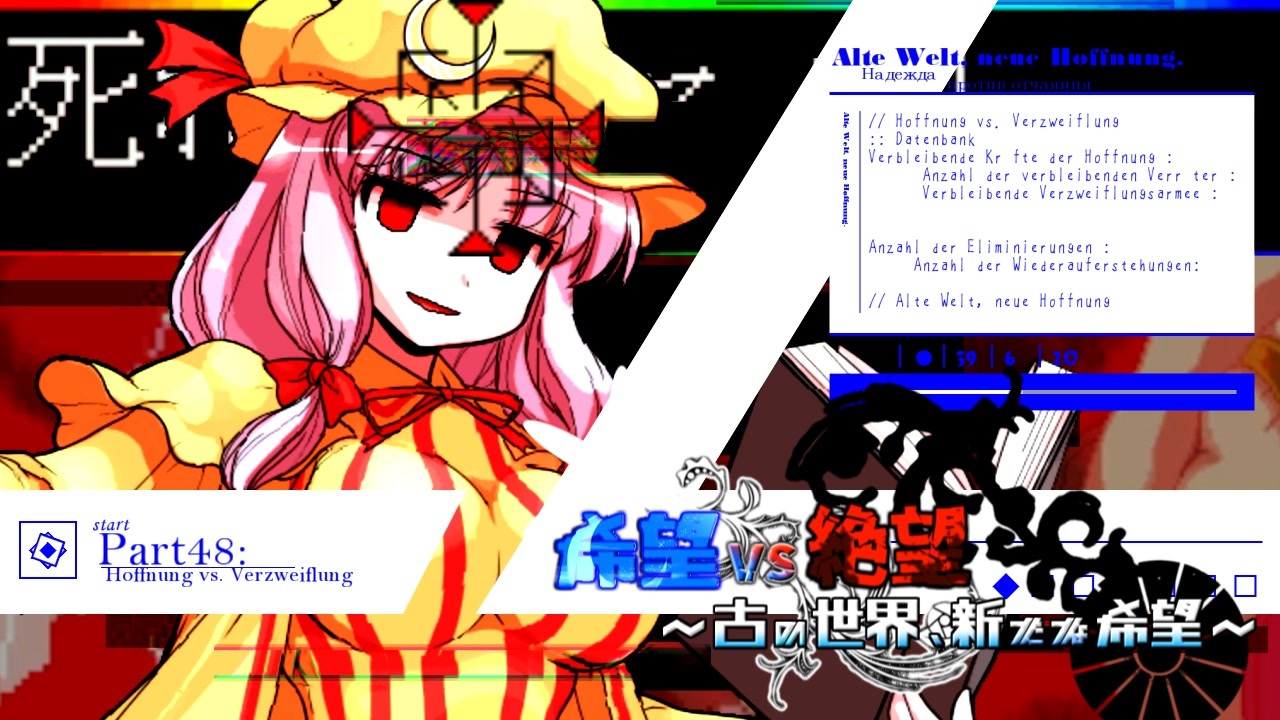 <span style="font-size: 18px;"><strong>邂逅</strong></span><br><br>BGMのリクエストは戦績表とかおまけの時にでも書いといてくれると助かります<br><br>ブログにて希望軍がどの大会から持ってきたかをメモしておきました。気になる方はどうぞ<br><span style="font-size: 10px;">BGM音量とか久々にやったので大きいとかあったら言ってください。</span><br><br>例によって戦績表ないです<br>---------------------------------------------------------------------------------------------------------------------<br>希望軍対象大会OPまとめ【<a href="https://www.nicovideo.jp/mylist/74106383" target="_blank" rel="noopener">mylist/74106383</a>】<br>絶望軍対象大会OPまとめ【<a href="https://www.nicovideo.jp/mylist/74259169" target="_blank" rel="noopener">mylist/74259169</a>】<br>大会マイリスト【<a href="https://www.nicovideo.jp/mylist/74275695" target="_blank" rel="noopener">mylist/74275695</a>】<br>大会ルール【 <a href="https://yukkuri-fie.hatenablog.com/entry/2022/12/20/005122" target="_blank" rel="noopener nofollow">https://yukkuri-fie.hatenablog.com/entry/2022/12/20/005122</a> 】<br>希望軍まとめ【 <a href="https://yukkuri-fie.hatenablog.com/entry/2022/11/23/213455" target="_blank" rel="noopener nofollow">https://yukkuri-fie.hatenablog.com/entry/2022/11/23/213455</a> 】<br>絶望軍まとめ【 <a href="https://yukkuri-fie.hatenablog.com/entry/2023/01/03/201554" target="_blank" rel="noopener nofollow">https://yukkuri-fie.hatenablog.com/entry/2023/01/03/201554</a> 】<br><br>OP : <a href="https://www.nicovideo.jp/watch/sm41581724" class="watch">sm41581724</a><br>前 : <a href="https://www.nicovideo.jp/watch/sm42132180" class="watch">sm42132180</a><br>次 : <a href="https://www.nicovideo.jp/watch/sm42154845" class="watch">sm42154845</a>