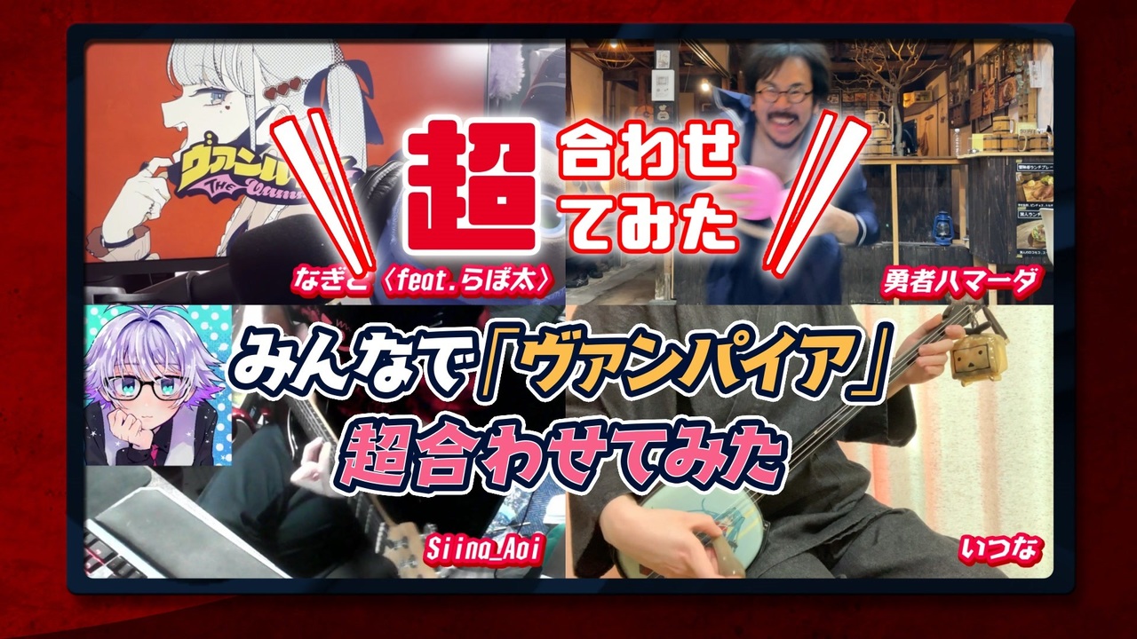 ニコニコ超会議 恒例企画「超合わせてみた」を、超会議2023で開催!<br>DECO*27さんの「ヴァンパイア feat. 初音ミク」を題材に、「歌ってみた」「演奏してみた」「踊ってみた」、それ以外にも様々な動画がジャンルを超えてコラボ!<br><br>ユーザーの皆さんで最高にハッピーなひとつの作品が出来上がりました!!<br>今年のリアル開催では新しいカタチで開催となり「新たな超合わせてみた」が生まれました!<br><br><br>本家MV:『ヴァンパイア feat. 初音ミク』 <a href="https://www.nicovideo.jp/watch/sm38387707" class="watch">sm38387707</a><br>Music: DECO*27<br><br><ニコニコ超会議2023><br>【期間】2023年4月22日(土)〜 4月30日(日)<br>【主催】ニコニコ超会議実行委員会<br>【公式WEBサイト】<a href="https://chokaigi.jp/" target="_blank" rel="noopener nofollow">https://chokaigi.jp/</a><br>【公式Twitterアカウント】<a href="https://twitter.com/chokaigi_PR" target="_blank" rel="noopener nofollow">https://twitter.com/chokaigi_PR</a><br>