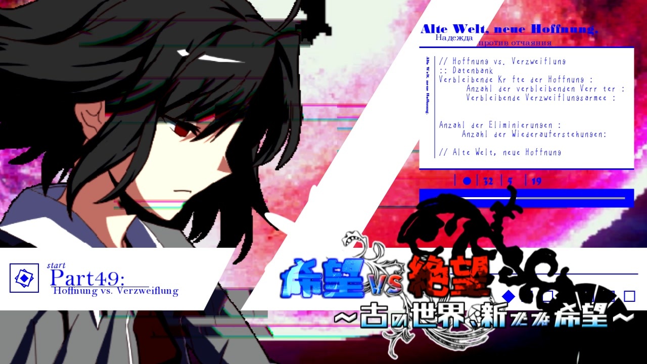 <span style="color: #ff0000; font-size: 18px;"><strong>22分42秒の激闘の先</strong></span><br><br><span style="font-size: 16px;"><strong>この動画は前編です</strong></span><br><br>BGMのリクエストは戦績表とかおまけの時にでも書いといてくれると助かります<br><br>ブログにて希望軍がどの大会から持ってきたかをメモしておきました。気になる方はどうぞ<br><span style="font-size: 10px;">BGM音量とか久々にやったので大きいとかあったら言ってください。</span><br><br>例によって戦績表ないです<br>---------------------------------------------------------------------------------------------------------------------<br>希望軍対象大会OPまとめ【<a href="https://www.nicovideo.jp/mylist/74106383" target="_blank" rel="noopener">mylist/74106383</a>】<br>絶望軍対象大会OPまとめ【<a href="https://www.nicovideo.jp/mylist/74259169" target="_blank" rel="noopener">mylist/74259169</a>】<br>大会マイリスト【<a href="https://www.nicovideo.jp/mylist/74275695" target="_blank" rel="noopener">mylist/74275695</a>】<br>大会ルール【 <a href="https://yukkuri-fie.hatenablog.com/entry/2022/12/20/005122" target="_blank" rel="noopener nofollow">https://yukkuri-fie.hatenablog.com/entry/2022/12/20/005122</a> 】<br>希望軍まとめ【 <a href="https://yukkuri-fie.hatenablog.com/entry/2022/11/23/213455" target="_blank" rel="noopener nofollow">https://yukkuri-fie.hatenablog.com/entry/2022/11/23/213455</a> 】<br>絶望軍まとめ【 <a href="https://yukkuri-fie.hatenablog.com/entry/2023/01/03/201554" target="_blank" rel="noopener nofollow">https://yukkuri-fie.hatenablog.com/entry/2023/01/03/201554</a> 】<br><br>OP : <a href="https://www.nicovideo.jp/watch/sm41581724" class="watch">sm41581724</a><br>前 : <a href="https://www.nicovideo.jp/watch/sm42144968" class="watch">sm42144968</a><br>次 : <a href="https://www.nicovideo.jp/watch/sm42156074" class="watch">sm42156074</a>