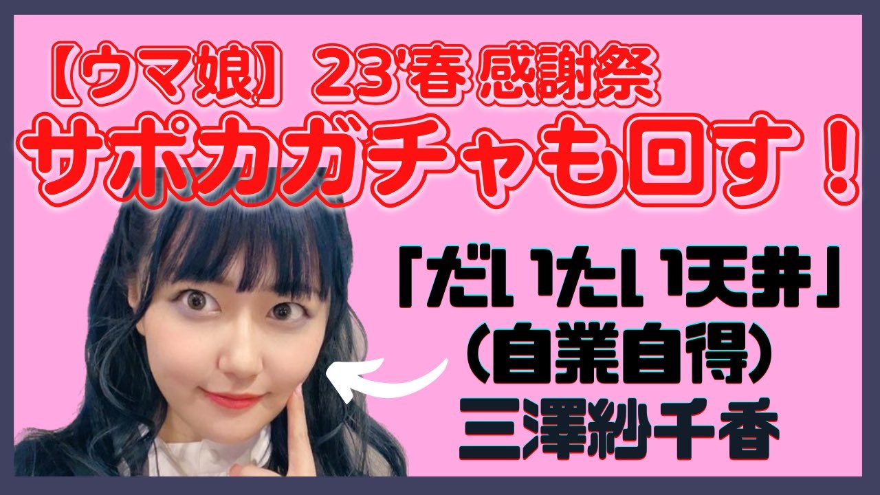 【ウマ娘】23’春の感謝祭 サポカガチャも回す!【天井課金姫/三澤紗千香】<br>サクラバクシンオー新衣装ガチャ直後、そのまま収録しました。<br><br>だって、鬼ドッジの絆のメンバーですよ!?<br>引きたいにきまってますよね!?そうですよね!<br><br>いいね、マイリスト登録、クリエイターサポート登録よろしくお願いいたします!!!<br>(ちなみに同じ動画がYouTubeにも上がっております。)<br><br>■三澤さんまとめ<br><a href="https://lit.link/misawasachika" target="_blank" rel="noopener nofollow">https://lit.link/misawasachika</a><br><br>■ようつべアカウント<br><a href="https://www.youtube.com/@Sachika_Misawa" target="_blank" rel="noopener nofollow">https://www.youtube.com/@Sachika_Misawa</a><br><br>■SNS<br>Twitter:<a href="https://twitter.com/misawa_official" target="_blank" rel="noopener nofollow">https://twitter.com/misawa_official</a><br>Instagram:<a href="https://www.instagram.com/misawa_sachika" target="_blank" rel="noopener nofollow">https://www.instagram.com/misawa_sachika</a><br>TikTok:<a href="https://www.tiktok.com/@misawasachika" target="_blank" rel="noopener nofollow">https://www.tiktok.com/@misawasachika</a>
