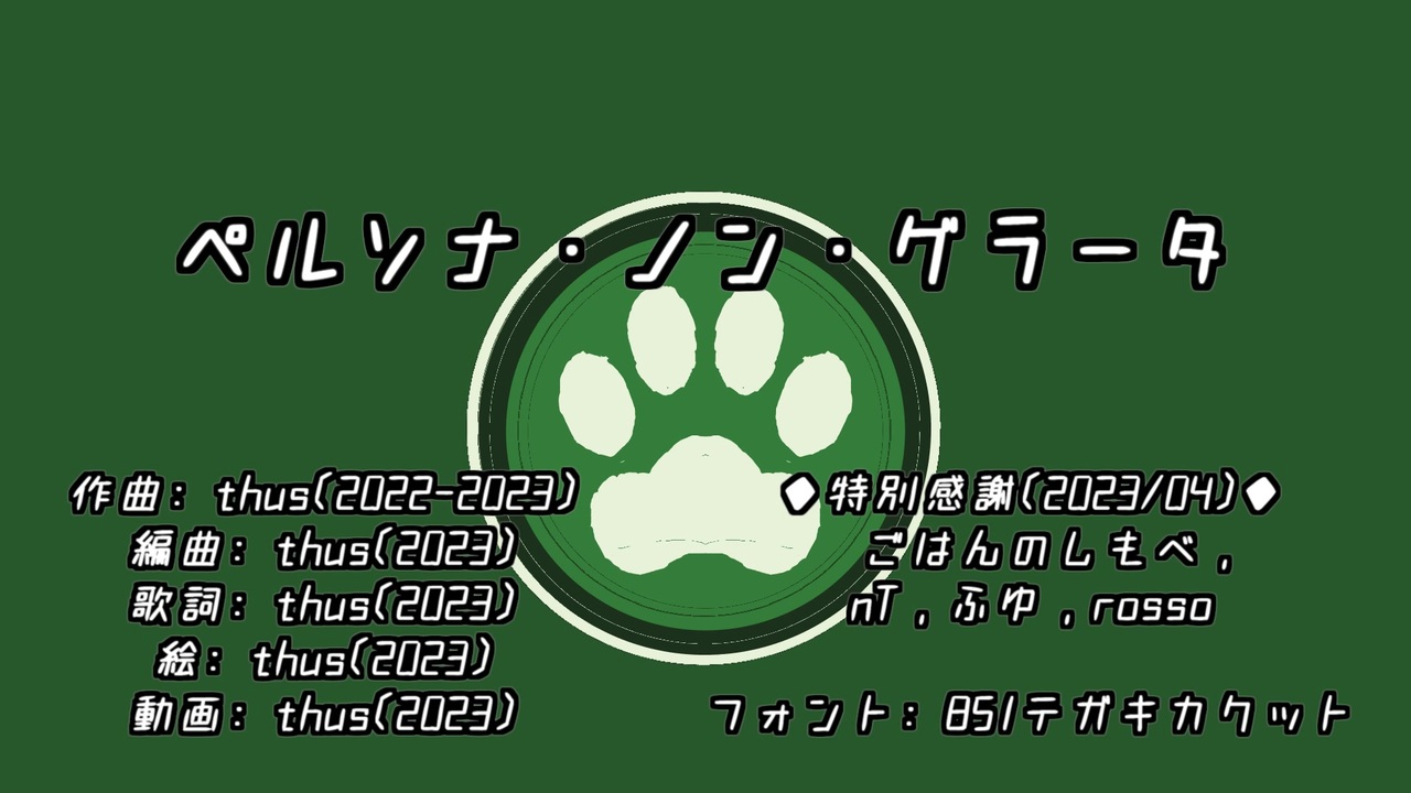 どうも、貴方の愛猫thusです。<br><br>◆「I or We GRAND PRIX」出展作品です。(詳細:<a href="https://twipla.jp/events/524106" target="_blank" rel="noopener nofollow">https://twipla.jp/events/524106</a> )<br>・運営:ボカコロ一同(<a href="https://www.nicovideo.jp/user/122637647" target="_blank" rel="noopener">user/122637647</a> )<br><br> この曲は一言で言って了えば、マスカーニャのことを考えていたらできた曲です。<br> …これだけだと意味不明なので、もう一寸説明しましょうか。<br> 事の発端はネット流行語大賞。第1位がウタに終わり、私個人としてはもう一寸変な単語が1位になれば面白かったのにと何故か何処か残念な気持ちを薄っすら抱えながら、I or We GRAND PRIX出展用のピエロぉな感じになりそうな曲を作る息抜きに流行語大賞の結果を見ていました。ざっと眺めていて目が留まったのは第90位「ニャオハ立つな」。「そういえばニャオハって結局立ったのか…?」と気になりました。調べたところ、結局ニャオハは立ってしまっていたのですが、非難されるどころか最終進化系であるマスカーニャは魅力的なデザインスタイル且トレーナーへ時に焼くほどの強い執着を持つという物凄いプロパティを備えていたが故(と私は解釈しています)に、寧ろ歓迎ムードに包まれているような印象を持ち、実際、マスカーニャの絵が沢山見つかりました。「立ったのに凄く愛されている…!」と面白く数々の魅力的なマスカーニャの絵を眺めていたら、行き詰っていた歌詞がするすると出て来て、こんな曲になりました、ちゃんちゃんと言った感じです。そして私は見事マスカーニャの虜(トリコではありません。それはグルメスパイザーです)になって了ったわけです。どれくらい虜になって了ったのかと言うと、定期的にマスカーニャが可愛く嫉妬する絵を見つけないともう人生やってられないくらいです。※半分嘘です。<br> 漸く食事が吐き気無く元の分量食べれるようになるくらいには回復してきましたが、生命への執着が極端に淡いこと淡いことブロークンハート。その辺りこそ全然回復しては居ませんが、概要欄がこのくらいかける位には回復している、と思ったら心身の摩耗によってか生活面で前は出来たのに今は出来なくなっている(気力的に箸が持てない等)ことが日々見つかってその度落胆と絶望。一寸宛一寸宛前に進んで行きたいと思います。心配して下さった多くの方々、ありがとうございます。お陰様です。<br /><br><br><br>====================<br>| 2026/01/04 21:00「インスペクタの自死未遂」:<a href="https://www.nicovideo.jp/watch/sm45800854" class="watch">sm45800854</a><br>| 投稿曲マイリスト:<a href="https://www.nicovideo.jp/mylist/57867175" target="_blank" rel="noopener">mylist/57867175</a><br>|――――――――――――――――――<br>| pixivFANBOX:<a href="https://thus.fanbox.cc/" target="_blank" rel="noopener nofollow">https://thus.fanbox.cc/</a><br>| アルバム等配信中:<a href="https://thus-library.blogspot.com/search/label/discography" target="_blank" rel="noopener nofollow">https://thus-library.blogspot.com/search/label/discography</a><br>| つなぐ(依頼・リクエスト):<a href="https://tsunagu.cloud/users/thus" target="_blank" rel="noopener nofollow">https://tsunagu.cloud/users/thus</a><br>|――――――――――――――――――<br>| YouTube:<a href="https://youtube.com/@thus" target="_blank" rel="noopener nofollow">https://youtube.com/@thus</a><br>| X:<a href="https://x.com/thus_submission" target="_blank" rel="noopener nofollow">https://x.com/thus_submission</a><br>| 他全リンク:<a href="https://lit.link/thus" target="_blank" rel="noopener nofollow">https://lit.link/thus</a><br>|――――――――――――――――――<br>| オフボーカル等:<a href="https://piapro.jp/thus_999discommunication" target="_blank" rel="noopener nofollow">https://piapro.jp/thus_999discommunication</a><br>| 楽曲/動画の二次利用に関して:<a href="https://bit.ly/3JRQQiZ" target="_blank" rel="noopener nofollow">https://bit.ly/3JRQQiZ</a><br><span style="color: #262626;">| </span><span style="color: #262626;"><strong>歌詞図書館(ふりがな有るよ!):</strong></span><a href="https://thus-library.blogspot.com/" target="_blank" rel="noopener nofollow">https://thus-library.blogspot.com/</a><br>====================