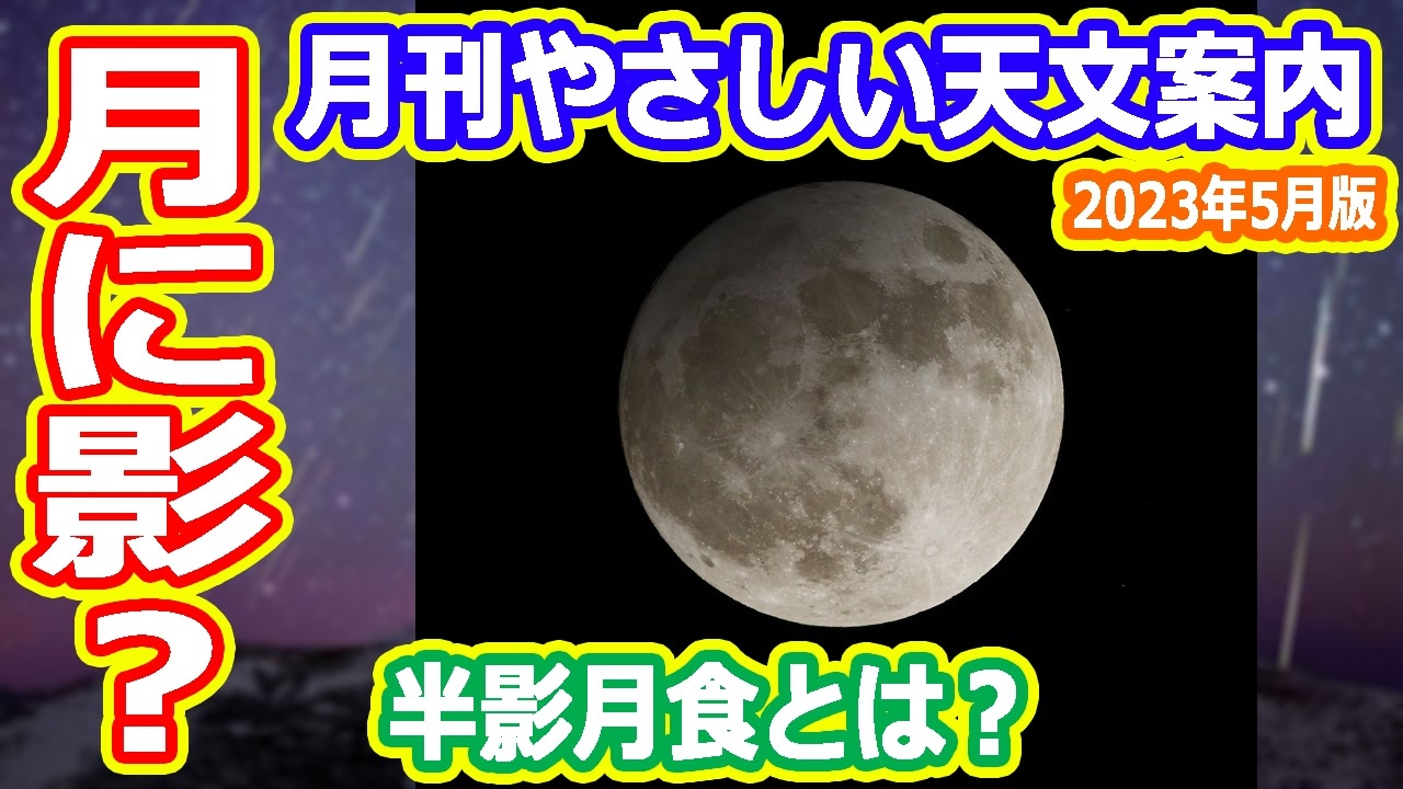 半影月食と流星群は間を開けろと何度言ったら・・・ッ!<br>誰だよこの企画考えたの!<br>これじゃ訓練された客以外は楽しめないじゃないか<br><br>【欲しいものリスト】<br><a href="https://www.amazon.jp/hz/wishlist/ls/30HG3KS6HM6G?ref_=wl_share" target="_blank" rel="noopener nofollow">https://www.amazon.jp/hz/wishlist/ls/30HG3KS6HM6G?ref_=wl_share</a><br><br>【いちおし宇宙系】<br>・アマゾンリンク<br><a href="https://amzn.to/2S8xjpH" target="_blank" rel="noopener nofollow">https://amzn.to/2S8xjpH</a><br>・天文年鑑 2023年版<br><a href="https://amzn.to/3ZNYWky" target="_blank" rel="noopener nofollow">https://amzn.to/3ZNYWky</a> (単行本)<br><a href="https://amzn.to/3nHIcOC" target="_blank" rel="noopener nofollow">https://amzn.to/3nHIcOC</a> (Kindle版)<br>・天体観測手帳2023<br><a href="https://amzn.to/413QBu5" target="_blank" rel="noopener nofollow">https://amzn.to/413QBu5</a> (単行本 Kindle版はありません)<br>・天文ガイド2023年1月号<br><a href="https://amzn.to/3KMToCZ" target="_blank" rel="noopener nofollow">https://amzn.to/3KMToCZ</a> (雑誌)<br><a href="https://amzn.to/3Kfvjmz" target="_blank" rel="noopener nofollow">https://amzn.to/3Kfvjmz</a> (Kindle版)<br>・コールマン(Coleman) チェア インフィニティチェア<br><a href="https://amzn.to/3NEZsg4" target="_blank" rel="noopener nofollow">https://amzn.to/3NEZsg4</a><br>・ネックピロー 低反発 クッション 携帯枕<br><a href="https://amzn.to/3iWKqEq" target="_blank" rel="noopener nofollow">https://amzn.to/3iWKqEq</a><br>・ハクキンカイロ ハクキンウォーマー(別途ベンジンが必要です)<br><a href="https://amzn.to/3FgErWF" target="_blank" rel="noopener nofollow">https://amzn.to/3FgErWF</a><br>・ZIPPOハンディウォーマー (別途ZIPPOオイルが必要です)<br><a href="https://amzn.to/3gQVjdm" target="_blank" rel="noopener nofollow">https://amzn.to/3gQVjdm</a><br>得た収益は、宇宙教の布教・動画製作のための書籍購入に使用します<br>へえ~と思ったらチャンネル登録と高評価をお願います<br>ツイッターでは、たまに宇宙ネタをつぶやいています<br><br>◆チャンネル登録はこちら<br><a href="http://www.youtube.com/channel/UChOv-TZWg3X4MDjFUF8CfQg?sub_confirmation=1" target="_blank" rel="noopener nofollow">http://www.youtube.com/channel/UChOv-TZWg3X4MDjFUF8CfQg?sub_confirmation=1</a><br>◆サブチャンネル<br><a href="http://www.youtube.com/channel/UCpQEOLtOpmXUwslvgi93yQw?sub_confirmation=1" target="_blank" rel="noopener nofollow">http://www.youtube.com/channel/UCpQEOLtOpmXUwslvgi93yQw?sub_confirmation=1</a><br>◆twitterはこちら<br><a href="https://twitter.com/skysanpei" target="_blank" rel="noopener nofollow">https://twitter.com/skysanpei</a>