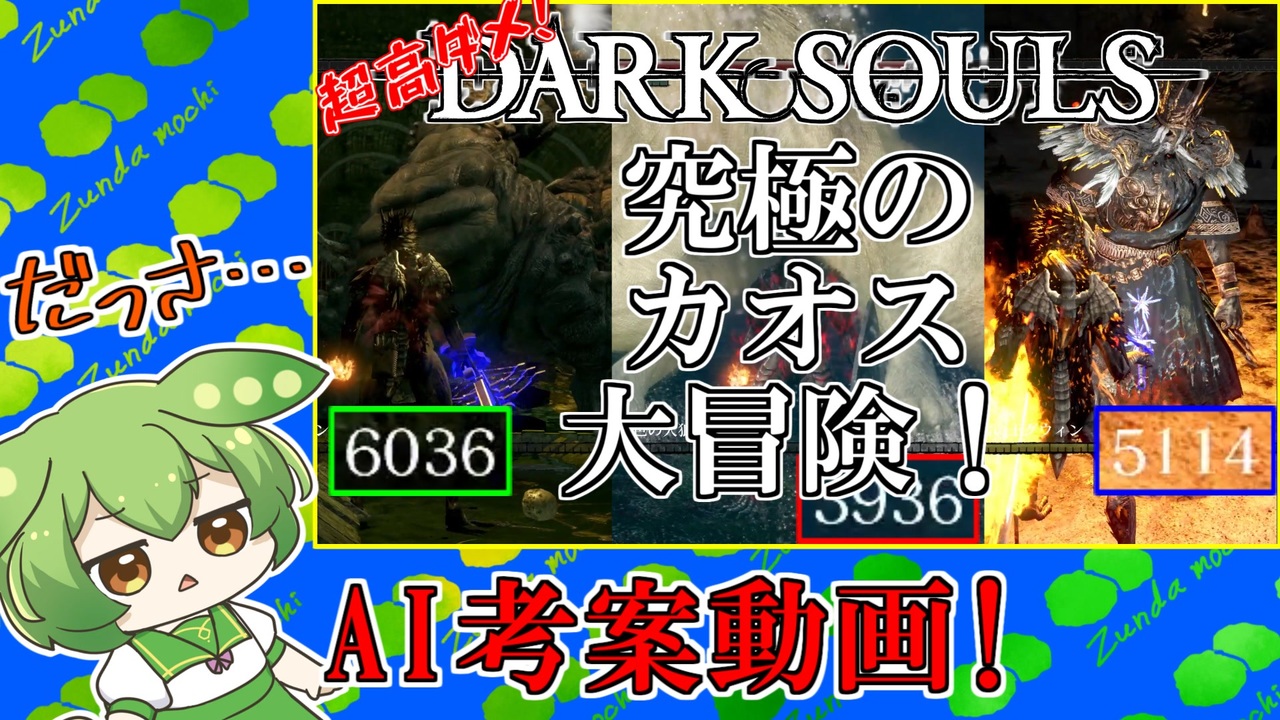 AIがどうのって言うより、ダークソウルがもう殆どやり尽くされてしまったのだぁ…<br><br>前回 <a href="https://www.nicovideo.jp/watch/sm42052650" class="watch">sm42052650</a><br><br>マイリスト <a href="https://www.nicovideo.jp/my/mylist/72780661" target="_blank" rel="noopener nofollow">https://www.nicovideo.jp/my/mylist/72780661</a><br><br>Twitter<br><a href="https://twitter.com/jyanaihozunda" target="_blank" rel="noopener nofollow">https://twitter.com/jyanaihozunda</a><br><br>マシュマロ下さい<br><a href="https://marshmallow-qa.com/jyanaihozunda?utm_medium=url_text&utm_source=promotion" target="_blank" rel="noopener nofollow">https://marshmallow-qa.com/jyanaihozunda?utm_medium=url_text&utm_source=promotion</a><br><br>YouTube<br><a href="https://www.youtube.com/channel/UCET_i_9cnbUUiZH-PKTjccA" target="_blank" rel="noopener nofollow">https://www.youtube.com/channel/UCET_i_9cnbUUiZH-PKTjccA</a><br><br><br>VOICEVOX:ずんだもん<br><a href="https://voicevox.hiroshiba.jp" target="_blank" rel="noopener nofollow">https://voicevox.hiroshiba.jp</a><br><br>◆ずんだもん立ち絵<br><a href="https://seiga.nicovideo.jp/seiga/im10857524" target="_blank" rel="noopener nofollow">https://seiga.nicovideo.jp/seiga/im10857524</a>