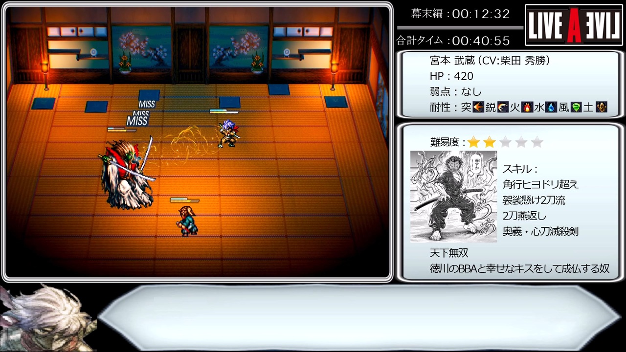 幕末編スタート~クリアまで<br><br>part1→<a href="https://www.nicovideo.jp/watch/sm42140092" class="watch">sm42140092</a> 次回→<a href="https://www.nicovideo.jp/watch/sm42219442" class="watch">sm42219442</a><br><br>Nintendo Switch<br>LIVE A LIVE HD-2D の RTAです。<br><br>良かったら、登録お願いします!!<br>Twitter<br><a href="https://twitter.com/pekoniko25" target="_blank" rel="noopener nofollow">https://twitter.com/pekoniko25</a><br>Twitch<br><a href="https://www.twitch.tv/pekoniki?ab_channel=pekoniki" target="_blank" rel="noopener nofollow">https://www.twitch.tv/pekoniki?ab_channel=pekoniki</a><br><br>©1994, 2022 SQUARE ENIX CO., LTD. All Rights Reserved.<br>CHARACTER DESIGN<br>© 1994, 2022 SQUARE ENIX CO., LTD.<br>© 1994, SHOGAKUKAN Inc.<br>Gosho Aoyama, Yoshihide Fujiwara, Osamu Ishiwata, Yoshinori Kobayashi, Ryouji Minagawa, Kazuhiko Shimamoto, Yumi Tamura<br>記載されている会社名・製品名・システム名などは、各社の商標、または登録商標です。
