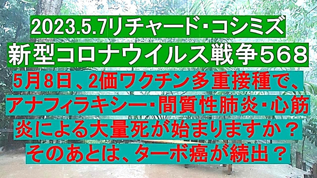 <span style="color: #cc4125;"><strong>「 テーマ : 新型コロナウイルス戦争 568 」</strong></span><br><br><span style="color: #ff0000;"><strong>「『 5月8日 』、『 2価ワクチン多重接種 』で、『 アナフィラキシー・間質性肺炎・心筋炎 』による<br> 『 大量死 』が始まりますか?その後は、『 ターボ癌 』が『 続出 』? 」</strong></span><br><br><span style="color: #0000ff;"><strong>「『 イベルメクチン・アビガン・その他コロナ対策 』について、ご意見をお寄せ下さい! 」<br><br> ◐ E-mail:richardkoshimizu@gmail.com</strong></span><br><br><strong>◐「クリエイター・サポート」・「ニコニ広告」・「フォロー」等、ご協力の程宜しくお願い致します。RK</strong><br><br><span style="color: #38761d;"><strong>◐ リチャード・コシミズ 講演会 公式 動画ギャラリー</strong></span><br> <span style="color: #38761d;"><strong><a href="http://www.t-sskk.com/richardkoshimizu/video-gallery/index.html" target="_blank" rel="noopener nofollow">http://www.t-sskk.com/richardkoshimizu/video-gallery/index.html</a><br><br>◐ リチャード・コシミズ 講演会 「 ニコニコ生放送『 LIVE 』」</strong></span><br> <span style="color: #38761d;"><strong><a href="https://bit.ly/3Bx8F5w" target="_blank" rel="noopener nofollow">https://bit.ly/3Bx8F5w</a><br><br>◐ リチャード・コシミズ 公式 ブログ</strong></span><br> <span style="color: #38761d;"><strong><a href="http://08054623210.jugem.jp/" target="_blank" rel="noopener nofollow">http://08054623210.jugem.jp/</a><br><br>◐ リチャード・コシミズ 公式 ホームページ<br> <a href="http://richardkoshimizu.boo.jp/" target="_blank" rel="noopener nofollow">http://richardkoshimizu.boo.jp/</a><br><br>◐ リチャード・コシミズ 公式 Twitter</strong></span><br> <span style="color: #38761d;"><strong><a href="https://twitter.com/rickoshimizu" target="_blank" rel="noopener nofollow">https://twitter.com/rickoshimizu</a></strong></span>