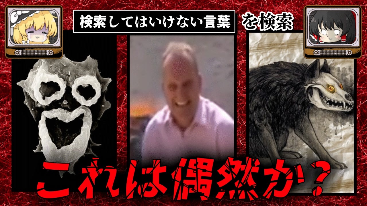 本日もやってまいりました。UMAやアメーバ、いつもどおり凶悪事件も入っています。検索してはいけないワードは残り1360個、まだまだです。<br><br>✅使用ボイス<br>————————————————————————————<br>コエフォント:<a href="https://coefont.studio" target="_blank" rel="noopener nofollow">https://coefont.studio</a><br>VOICEVOX:ずんだもん、四国めたん、波音リツ、雨晴はう、冥鳴ひまり、玄野武宏、青山龍星、白上虎太郎、もち子(cv 明日葉よもぎ)、剣崎雌雄、春日部つむぎ<br>AquesTalk:<a href="https://www.a-quest.com/products/aquestalk.html" target="_blank" rel="noopener nofollow">https://www.a-quest.com/products/aquestalk.html</a><br><br><br>✅ゆっくり立ち絵<br>————————————————————————————<br>くまの巣様:<a href="https://www.youtube.com/channel/UCVMhSwMzJRbaMsvHdsCgu1g" target="_blank" rel="noopener nofollow">https://www.youtube.com/channel/UCVMhSwMzJRbaMsvHdsCgu1g</a><br>配布サイト:<a href="https://kumasannosozaiya.studio.site/" target="_blank" rel="noopener nofollow">https://kumasannosozaiya.studio.site/</a><br><br><br>✅オリジナルイラスト<br>————————————————————————————<br>うさ義様:<a href="https://touhopu2.fanbox.cc/posts/2214008" target="_blank" rel="noopener nofollow">https://touhopu2.fanbox.cc/posts/2214008</a><br>おしお様:<a href="https://twitter.com/shioqqq" target="_blank" rel="noopener nofollow">https://twitter.com/shioqqq</a><br>※アイキャッチ前のイラストはNovelAI<br><br><br>✅その他の素材<br>————————————————————————————<br>きまぐれアフター背景素材置き場:<a href="https://k-after.at.webry.info/" target="_blank" rel="noopener nofollow">https://k-after.at.webry.info/</a><br>みんちりえ: <a href="https://min-chi.material.jp/" target="_blank" rel="noopener nofollow">https://min-chi.material.jp/</a> <br>暗黒工房:<a href="http://www.ankokukoubou.com/" target="_blank" rel="noopener nofollow">http://www.ankokukoubou.com/</a><br>空想曲線:<a href="https://kopacurve.blog.fc2.com/" target="_blank" rel="noopener nofollow">https://kopacurve.blog.fc2.com/</a><br><br><br>✅BGM<br>————————————————————————————<br>Weekend / zukisuzuki:<a href="https://zukisuzukibgm.com/weekend/" target="_blank" rel="noopener nofollow">https://zukisuzukibgm.com/weekend/</a><br>Moonside Howl / safu:<a href="https://safuworks.com/moonsidehowl/" target="_blank" rel="noopener nofollow">https://safuworks.com/moonsidehowl/</a><br>superstar / しゃろう:<a href="https://www.youtube.com/watch?v=HWsOivtPz-o&list=WL&index=11" target="_blank" rel="noopener nofollow">https://www.youtube.com/watch?v=HWsOivtPz-o&list=WL&index=11</a><br>アイキャッチ効果音:<a href="https://tam-music.com/wp-content/uploads/2015/09/soft-z02.mp3" target="_blank" rel="noopener nofollow">https://tam-music.com/wp-content/uploads/2015/09/soft-z02.mp3</a><br>※一部有料素材のため記載なし