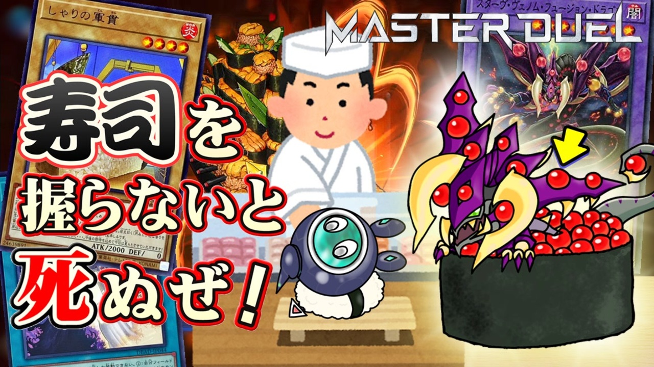 <span style="font-size: 18px;"><strong>君が寿司だ。</strong></span><br>モンスターを素材に<span style="color: #ff0000;"><strong>エ寿司ーズ召喚</strong></span><strong>!!!!</strong><br><br><span style="color: #0000ff; font-size: 18px;"><strong>パック開封</strong></span><span style="font-size: 18px;">とか</span><span style="color: #ff0000; font-size: 18px;"><strong><i>デュエル!</i></strong></span><br>[軍貫デッキ][寿司]<br><span style="font-size: 10px;">PS版には名前の非表示機能が無いため黒塗りしてあります。</span><br>遊戯王初心者がデュエルするだけの動画です。よろしくおねがいします<br><span style="color: #ff00ff;">(いいねを押してくれるとデュエルスタンバイ!)</span><br><br><strong>次回の動画→<a href="https://www.nicovideo.jp/watch/sm43206106" class="watch">sm43206106</a><br>前回の動画→<a href="https://www.nicovideo.jp/watch/sm42119088" class="watch">sm42119088</a></strong><br><br>カオスゲームマイリス <a href="https://www.nicovideo.jp/mylist/31820711" target="_blank" rel="noopener">mylist/31820711</a><br><br><br>のすけさん作・動画用オリジナル曲<br>oodoraさん作バンカズ・カービィアレンジから<br><br>変態のツイッターはこちらです <a href="http://twitter.com/simoeru" target="_blank" rel="noopener nofollow">http://twitter.com/simoeru</a>
