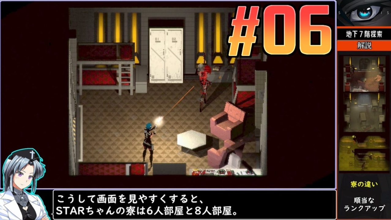 初格差社会!6人部屋と化したSTAR寮なので初投稿です。<br>S-23 地下採掘施設・シェルピンスキー地下5~7階<br>「B5:メンテナンスフロア」「B6:一般職員居住区」「B7:保安警備居住区」<br><br>◆A面ストーリー◆<br>太陽系の辺境惑星・レンにある地下採掘施設シェルピンスキー。<br>そこにいるアリーナ・ソウ士官を探し、<br>レプリカ・LSTR-256Rは地下採掘現場を目指す・・・<br><br>◆B面ストーリー◆<br>量産型美女・調査と船舶技師を兼ねるアンドロイド・レプリカ<br>LSTR-512は不時着した宇宙船ペンローズ512の中で目覚める。<br>パートナーであるアリアーネ・ヤン偵察士官の姿が見えない。<br>LSTR-512はヤン士官を探す・・・<br><br>◆SIGNALIS(シグナーリス)◆<br>2022年10月発売のバイオハザードやメタルギアソリッドをリスペクトした<br>サバイバル探索アクションゲーム。<br><br><br>◆ニコニコクリエイターサポート<br><a href="https://creator-support.nicovideo.jp/registration/1203831" target="_blank" rel="noopener nofollow">https://creator-support.nicovideo.jp/registration/1203831</a><br>動画制作の励みになります<br><br>◆Twitter<br><a href="https://twitter.com/ikamono8bit" target="_blank" rel="noopener nofollow">https://twitter.com/ikamono8bit</a><br>◆youtube<br><a href="http://www.youtube.com/c/IkamonoY" target="_blank" rel="noopener nofollow">http://www.youtube.com/c/IkamonoY</a><br><br>投稿動画パート1<a href="https://www.nicovideo.jp/mylist/41918729" target="_blank" rel="noopener">mylist/41918729</a><br>作った動画全部 <a href="https://www.nicovideo.jp/mylist/42963985" target="_blank" rel="noopener">mylist/42963985</a><br>作った動画全部2<a href="https://www.nicovideo.jp/mylist/70404393" target="_blank" rel="noopener">mylist/70404393</a>