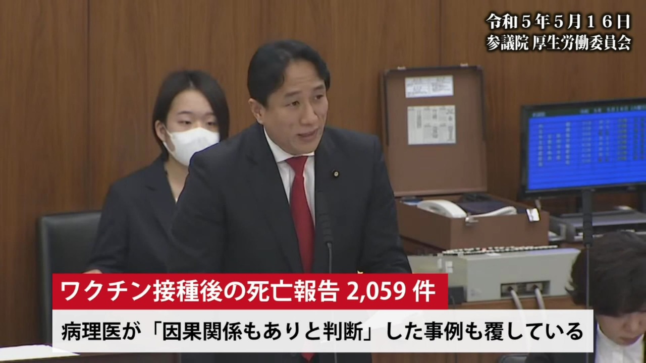令和5年5月16日 参議院厚生労働委員会にて<br><br>・参議院インターネット審議中継<br><a href="https://www.webtv.sangiin.go.jp/webtv/index.php" target="_blank" rel="noopener nofollow">https://www.webtv.sangiin.go.jp/webtv/index.php</a><br><br>―――――――――――――――――――――――――――――――<br><br>❑4月10日発売予定「世界を欺いた〇〇〇〇〇〇〇」(宝島社新書)<br><a href="https://amzn.to/3ymDfgr" target="_blank" rel="noopener nofollow">https://amzn.to/3ymDfgr</a><br>鳥集徹(著) 闇のダディ(著) 藤江成光(著)←私<br><br>―――――――――――――――――――――――――――――――<br><br>❑新しい動画サイト「真の日本人増加計画」始めました!<br><a href="https://nicochannel.jp/fujie/" target="_blank" rel="noopener nofollow">https://nicochannel.jp/fujie/</a><br>(ニコニコチャンネル+)<br><br><br>❏藤江の活動を支援していただける方向け<br>【藤江支援口座】のご案内<br>住信SBIネット銀行 ミカン支店(店番号103)<br>口座番号 3107694<br>口座名義 フジエ マサミツ<br><br>――――――――――――――――――――――――――――――<br><br>日本の人口増加を目指す男、藤江です!【メインチャンネル】<br><a href="https://www.youtube.com/c/JINKOUZOUKA/" target="_blank" rel="noopener nofollow">https://www.youtube.com/c/JINKOUZOUKA/</a><br><br>地域と日本の存続のためニ!【藤江2ndチャンネル】<br><a href="https://www.youtube.com/channel/UCfBh4rv5UT7D-qR6KsoZrsA" target="_blank" rel="noopener nofollow">https://www.youtube.com/channel/UCfBh4rv5UT7D-qR6KsoZrsA</a><br><br>今こそ!三千年の底力【藤江3rdチャンネル】<br><a href="https://www.youtube.com/channel/UC5Yrsm8-X8nZj4uKgvE7CBw" target="_blank" rel="noopener nofollow">https://www.youtube.com/channel/UC5Yrsm8-X8nZj4uKgvE7CBw</a><br><br>四海兄弟【藤江4thチャンネル】<br><a href="https://www.youtube.com/channel/UCiyJNO57quj80Ysy7nOABvA" target="_blank" rel="noopener nofollow">https://www.youtube.com/channel/UCiyJNO57quj80Ysy7nOABvA</a><br><br>五穀豊穣【藤江5thチャンネル】<br><a href="https://www.youtube.com/channel/UCptMJCoKYghfew5tDzoEqHQ" target="_blank" rel="noopener nofollow">https://www.youtube.com/channel/UCptMJCoKYghfew5tDzoEqHQ</a><br><br>六根清浄【藤江6thチャンネル】<br><a href="https://www.youtube.com/@FUJIE6th" target="_blank" rel="noopener nofollow">https://www.youtube.com/@FUJIE6th</a><br><br>藤江のTwitter<br><a href="https://twitter.com/JINKOUZOUKA_jp" target="_blank" rel="noopener nofollow">https://twitter.com/JINKOUZOUKA_jp</a><br><br>藤江のニコニコ動画<br><a href="https://www.nicovideo.jp/user/5457748" target="_blank" rel="noopener nofollow">https://www.nicovideo.jp/user/5457748</a>