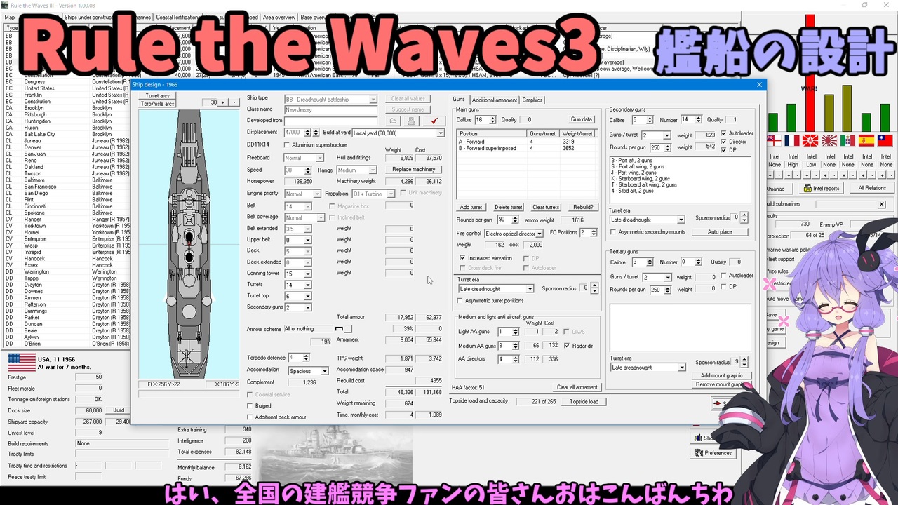<strong>Rule the Waves3 Steamで販売開始!</strong><br><a href="https://store.steampowered.com/app/2008100/Rule_the_Waves_3/" target="_blank" rel="noopener nofollow">https://store.steampowered.com/app/2008100/Rule_the_Waves_3/</a><br><br>過去作の動画<br>RtW1フランス(ゆっくり実況) <a href="https://www.nicovideo.jp/series/3246" target="_blank" rel="noopener">series/3246</a><br>RtW2日本(ゆっくり実況) <a href="https://www.nicovideo.jp/series/43732" target="_blank" rel="noopener">series/43732</a><br>RtW2イタリア ゆっくり版:<a href="https://www.nicovideo.jp/series/140163" target="_blank" rel="noopener">series/140163</a> ボイロ版:<a href="https://www.nicovideo.jp/series/140164" target="_blank" rel="noopener">series/140164</a><br><br>最初のゲーム紹介動画→<a href="https://www.nicovideo.jp/watch/sm42237802" class="watch">sm42237802</a><br>次は戦争と海戦について→<a href="https://www.nicovideo.jp/watch/sm42243755" class="watch">sm42243755</a><br><br>2023/5/20 修正:乾舷を喫水って言ってたとこ、など。<br /><br>動画part1リスト <a href="https://www.nicovideo.jp/mylist/55236049" target="_blank" rel="noopener">mylist/55236049</a><br>シリーズまとめ <a href="https://www.nicovideo.jp/user/319265/series" target="_blank" rel="noopener nofollow">https://www.nicovideo.jp/user/319265/series</a><br><br><a target="_blank" href="https://qa.nicovideo.jp/faq/show/19424?site_domain=default" style="font-size: 13px;color: #657586; text-decoration: underline; line-height: 1.4">この動画は投稿者によって修正されました</a>