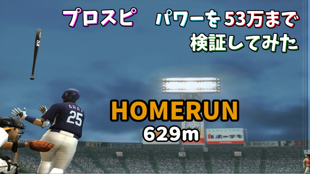 プロスピで改造してパワーの検証をしました。<br>後半はパワーを上げての実践になります。<br>パワーを53万にすると28mでホームランが可能(謎理論)<br><br>試合の続きは長くなるのでこちらで→<a href="https://www.nicovideo.jp/watch/sm42244629" class="watch">sm42244629</a><br />動画に「いいね!」「マイリスト登録」よろしくお願いします。<br><br>・おすすめ<br>[TAS]Grand Theft Auto 3 Part1→<a href="https://www.nicovideo.jp/watch/sm14718961" class="watch">sm14718961</a><br>[TAS]MaxPayne デッドターゲット Part1→<a href="https://www.nicovideo.jp/watch/sm15093299" class="watch">sm15093299</a><br>[TAS]michigan Part1→<a href="https://www.nicovideo.jp/watch/sm18393230" class="watch">sm18393230</a><br><br>サポート頂けると励みになります<br>魔界塔士のサポーターになる→<a href="https://creator-support.nicovideo.jp/registration/15153622" target="_blank" rel="noopener nofollow">https://creator-support.nicovideo.jp/registration/15153622</a><br><br>TAS動画まとめ→<a href="https://koeiprogenitor.com/tas/matome/" target="_blank" rel="noopener nofollow">https://koeiprogenitor.com/tas/matome/</a><br>つべ→<a href="https://www.youtube.com/user/koeiprogenitor1/" target="_blank" rel="noopener nofollow">https://www.youtube.com/user/koeiprogenitor1/</a><br>インスタ→<a href="https://www.instagram.com/makaitoshi" target="_blank" rel="noopener nofollow">https://www.instagram.com/makaitoshi</a><br><br>本編→シリーズ一覧見てね<br>