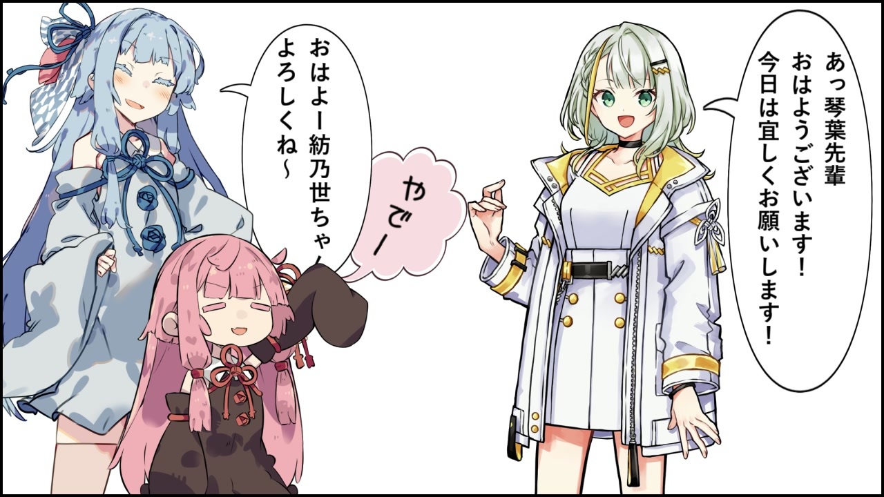 後輩が出来てウキウキのことのはあかね。<br><br><span style="color: #e06666; font-size: 18px;"><strong>愚地独歩のあれがやりたかっただけ。</strong></span><br>次に出す動画は不殺の茜にしようと思ってましたが新人っぽい新人が来たのでつい。<br><br>劇場(ネタ系) <a href="https://www.nicovideo.jp/series/279833" target="_blank" rel="noopener">series/279833</a><br>ヨッシーアイランド(画面制限) <a href="https://www.nicovideo.jp/series/276421" target="_blank" rel="noopener">series/276421</a> Part1→<a href="https://www.nicovideo.jp/watch/sm39612783" class="watch">sm39612783</a><br>スーパードンキーコング2(不殺) <a href="https://www.nicovideo.jp/series/209758" target="_blank" rel="noopener">series/209758</a> Part1→<a href="https://www.nicovideo.jp/watch/sm38471390" class="watch">sm38471390</a><br>スーパードンキーコング2(バグ技) <a href="https://www.nicovideo.jp/series/351966" target="_blank" rel="noopener">series/351966</a> Part1→<a href="https://www.nicovideo.jp/watch/sm40640989" class="watch">sm40640989</a>