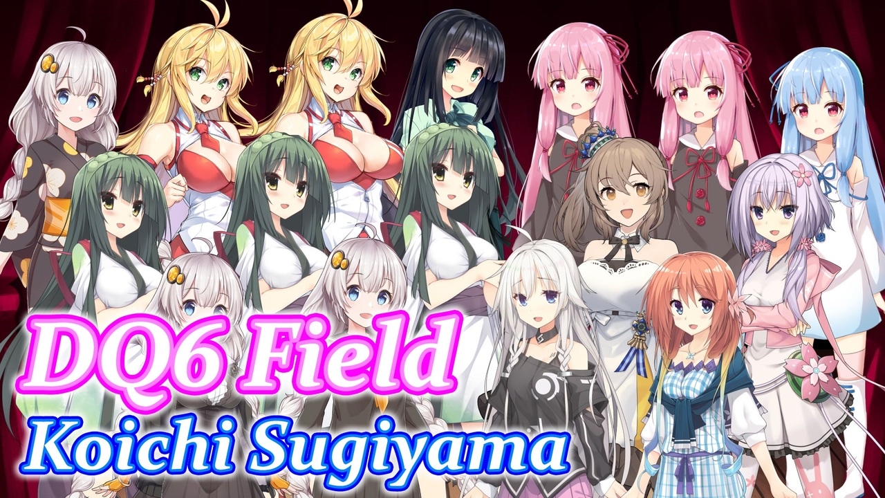 <span style="color: #ff0000; font-size: 16px;"><strong>人数が多くなってきたので眩しさに注意。</strong></span><br>フルスクにせず小さい画面にするだけでも結構マシになります。<br>音がメインなので最小化とかバックグラウンドにして画面見なくてもいいかと。<br><br>第3回ボイパロイド投稿祭3本目です。<br>DQ6の現実フィールドのBGMです。<br><br>スマホ版メインに耳コピしてあるのでSFC版よりもいろんな音が入ってます。<br>ボイパロイドでもちゃんと重々しい感じになるんですねぇ。<br><br>・編成 (16トラック)<br>SV:京町セイカx1 (トランペット)<br>VO:弦巻マキx2 (ホルンx2)<br>VL:紲星あかりx3 (ストリングス1/ストリングス2/ハープ&ビブラフォン)<br>SV:琴葉茜x2 (トロンボーンx2)<br>SV:琴葉葵x1 (チューバ)<br>VL:東北ずん子x3 (ピッコロx1/フルートx2)<br>Ce:さとうささらx1 (オーボエ)<br>SV:IAx1 (ストリングス3)<br>VL:桜乃そらx1 (ストリングス4)<br>VL:結月ゆかり穏x1 (ストリングス5)<br><br>(VL:VOCALOID, SV:SynthesizerV, Ce:CeVIO, VO:VOICEROID)