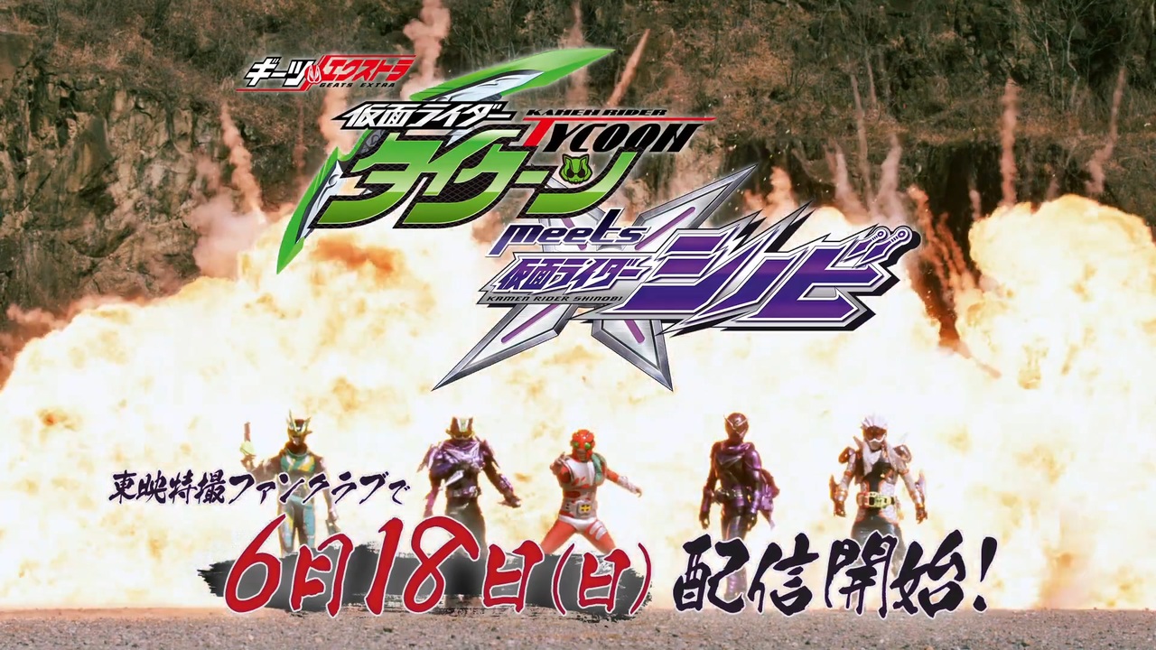 「仮面ライダータイクーンmeets仮面ライダーシノビ」東映特撮ファンクラブにて6月18日(日)配信決定!<br><a href="https://tokusatsu-fc.jp/" target="_blank" rel="noopener nofollow">https://tokusatsu-fc.jp/</a><br><br>#仮面ライダーZX/村雨良 役で #菅田俊 出演解禁!仮面ライダー剣斬(声:富樫慧士)、仮面ライダー風魔とともに忍者ライダー大集結!<br>そして天草四郎時貞役で #橋本祥平 出演!<br><br>あらすじも解禁!<br>なんと、本作品は「仮面ライダーシノビ」の第46話!<br>第1話~第3話は東映特撮ファンクラブにて配信中だが、いきなりクライマックスの第46話をお届けします!<br><br><br>TTFCオリジナル<br>ギーツエクストラ 仮面ライダータイクーンmeets仮面ライダーシノビ<br>TTFCにて6月18日(日)より配信開始!!<br><br>【あらすじ】<br>時は2023年2月――。<br>2022年3月からスタートした『仮面ライダーシノビ』も最終局面を迎える第46話!<br>天草四郎時貞が今生カンパニーを乗っ取り、世界を手中に収めんとしていた。<br>一方、異世界ゲートに吸い込まれシノビの世界にやってきた桜井景和・沙羅の姉弟は、忍者だらけの景色に困惑。世界を超えた忍者ライダーたちの出会いが、新たな波乱を巻き起こす?!<br><br><br>【出演】<br>#佐藤瑠雅(桜井景和/仮面ライダータイクーン 役)<br>#多和田任益(神蔵蓮太郎/仮面ライダーシノビ 役)<br>橋本祥平(天草四郎時貞/ジェロニモ 役)<br>#志田音々(桜井沙羅 役)<br>#華村あすか(神蔵紅芭 役)<br>#財木琢磨(今生勇道 /ハッタリ 闇 役)<br>#姜暢雄(ガマノ師匠 声)<br>#富樫慧士(仮面ライダー剣斬 声)<br>#鈴木福<br>菅田俊(村雨良/仮面ライダーZX 役)<br><br>【スタッフ】<br>原作:石ノ森章太郎<br>脚本:金子香緒里<br>監督・アクション監督:#坂本浩一 <br><br>©東映特撮ファンクラブ © 2022 石森プロ・テレビ朝日・ADK EM・東映