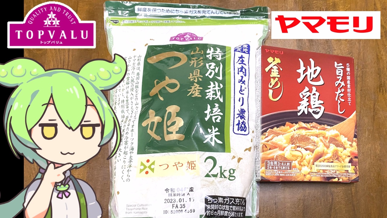 トップバリュを使い始めてちょっとずつヤバイかもというメーカーが分かるようになってきました。<br>その中のひとつがヤマモリ株式会社さんなのですが<br>コメントで自社製品は美味しいという意見をもらったので<br>実際に作ってトプバと自社製品の違いを調べることにしました。<br><br>【参考】<br>地鶏釜めしの素(ヤマモリ)<br><a href="https://www.yamamori.co.jp/products/jidori22aw/" target="_blank" rel="noopener nofollow">https://www.yamamori.co.jp/products/jidori22aw/</a><br>特別栽培米山形県産つや姫<br><a href="https://www.topvalu.net/items/detail/4902121409174/" target="_blank" rel="noopener nofollow">https://www.topvalu.net/items/detail/4902121409174/</a><br>日本高血圧学会<br><a href="https://www.jpnsh.jp/index.html" target="_blank" rel="noopener nofollow">https://www.jpnsh.jp/index.html</a><br>つや姫 なぜ美味しい(山形 味の農園)<br><a href="https://www.ajfarm.com/11671/" target="_blank" rel="noopener nofollow">https://www.ajfarm.com/11671/</a><br>モンテディオ山形<br><a href="https://www.montedioyamagata.jp/" target="_blank" rel="noopener nofollow">https://www.montedioyamagata.jp/</a><br><br>【使用した素材】(※敬称略)<br>(合成音声)VOICEVOX/ずんだもん/四国めたん<br><a href="https://voicevox.hiroshiba.jp/" target="_blank" rel="noopener nofollow">https://voicevox.hiroshiba.jp/</a><br>(立ち絵)坂本アヒル<br><a href="https://seiga.nicovideo.jp/seiga/im10788496" target="_blank" rel="noopener">im10788496</a>/<a href="https://seiga.nicovideo.jp/seiga/im10791276" target="_blank" rel="noopener">im10791276</a><br>(楽曲)甘茶の音楽工房/「楽しい麦畑」「お城の舞踏会」<br><a href="https://amachamusic.chagasi.com" target="_blank" rel="noopener nofollow">https://amachamusic.chagasi.com</a><br><br>【関連動画】<br>トップバリュの黄色いヤツ「お米」<br><a href="https://www.youtube.com/watch?v=Sd9KputfyGE&t=205s&ab_channel=maryu4492" target="_blank" rel="noopener nofollow">https://www.youtube.com/watch?v=Sd9KputfyGE&t=205s&ab_channel=maryu4492</a><br>トップバリュの黄色いヤツ「和風だしのきいたカレーうどんの素中辛」<br><a href="https://www.youtube.com/watch?v=rq4-Lr7MZtY&ab_channel=maryu4492" target="_blank" rel="noopener nofollow">https://www.youtube.com/watch?v=rq4-Lr7MZtY&ab_channel=maryu4492</a>