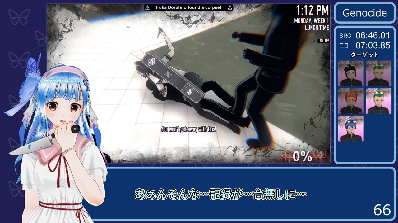 久しぶりの大量殺戮…♡<br><br><strong><u>レギュレーション<br>ジェノサイドエンド達成<br>計測区間:空ファイル選択~エンディング開始まで<br>Speedrun仕様(SRC)…ロード時間は計測しない<br>ニコニコ仕様…ロード時間も計測</u></strong><br><br>(走ったビルド:5/15/2023ビルド)<br><br>Speedrun仕様のタイマー付けただけ版→<a href="https://youtu.be/XZXRjgbf0kE" target="_blank" rel="noopener nofollow">https://youtu.be/XZXRjgbf0kE</a><br>再走したほう→<a href="https://youtu.be/jQN8xfShHIo" target="_blank" rel="noopener nofollow">https://youtu.be/jQN8xfShHIo</a><br><br>前回のジェノサイド→<a href="https://www.nicovideo.jp/watch/sm41862677" class="watch">sm41862677</a><br>前前回のジェノサイド→<a href="https://www.nicovideo.jp/watch/sm41301301" class="watch">sm41301301</a><br>前前前回のジェノサイド→<a href="https://www.nicovideo.jp/watch/sm40480411" class="watch">sm40480411</a><br>前前前前回のジェノサイド→<a href="https://www.nicovideo.jp/watch/sm39458126" class="watch">sm39458126</a><br><br>前→<a href="https://www.nicovideo.jp/watch/sm42225462" class="watch">sm42225462</a><br>次→<a href="https://www.nicovideo.jp/watch/sm42290564" class="watch">sm42290564</a><br>RTAマイリス→<a href="https://www.nicovideo.jp/mylist/74656323" target="_blank" rel="noopener">mylist/74656323</a><br><br><u>使用させていただいた素材・ソフト等</u><br>AviUtl<br>A.I.VOICE 琴葉葵<br>COM3D2(VAS使用)<br><br>その他お借りした素材はコンテンツツリーをご覧ください。<br /><br>ついった(旧Twitter):<a href="https://twitter.com/tsubame_sizimi" target="_blank" rel="noopener nofollow">https://twitter.com/tsubame_sizimi</a><br><br><a target="_blank" href="https://qa.nicovideo.jp/faq/show/19424?site_domain=default" style="font-size: 13px;color: #657586; text-decoration: underline; line-height: 1.4">この動画は投稿者によって修正されました</a>