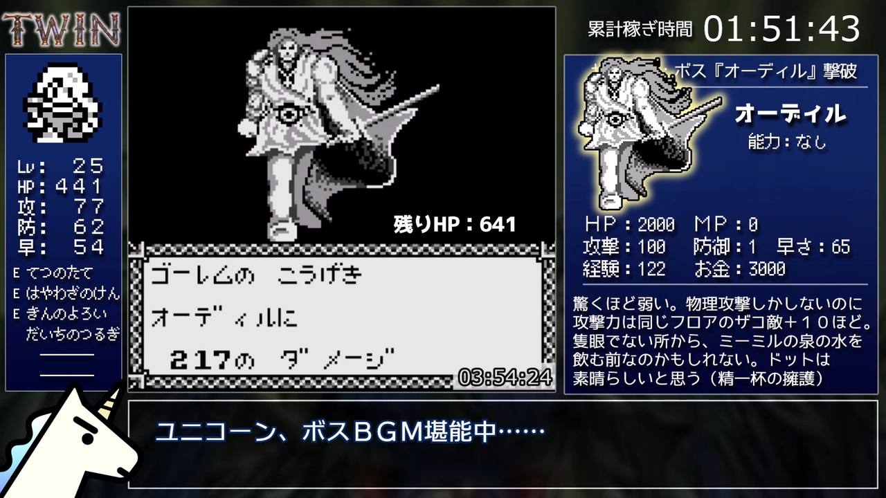 1992年発売、アテナ制作のゲームボーイのRPG『 TWIN(ツイン) 』RTAのパート5です。<br>そろそろ解説することがなくなってきました。<br><br>part.4→<a href="https://www.nicovideo.jp/watch/sm42229514" class="watch">sm42229514</a><br>part.6→<a href="https://www.nicovideo.jp/watch/sm42323147" class="watch">sm42323147</a>(6/8 21:00公開)<br><br>走ったRTAのpart.1まとめ→<a href="https://www.nicovideo.jp/mylist/73222388" target="_blank" rel="noopener">mylist/73222388</a><br>RTA全部まとめ→<a href="https://www.nicovideo.jp/mylist/72786007" target="_blank" rel="noopener">mylist/72786007</a><br><br><u>▽レギュレーション</u><br>タイマー開始:ネーム入力画面で職業を選択した瞬間<br>タイマー終了:デスタークに最後の一撃を与えたテキストが表示されきった瞬間<br><br>その他のルール<br>・4つの『しるし』を集めて『もんしょう』を手に入れてクリアする<br>・エミュレータのリセット機能の使用可<br><br>*エミュレータを使用しています。リセット前にマウスポインタが写りこみます。<br><br>・お世話になった攻略サイト様『ゲームの里』<br>→<a href="http://gesato.com/gb/twin/top.html" target="_blank" rel="noopener nofollow">http://gesato.com/gb/twin/top.html</a><br><br>・今までの調査結果や攻略法をまとめた個人wiki(矛盾)を作りました<br><a href="https://w.atwiki.jp/nagisa381rta/" target="_blank" rel="noopener nofollow">https://w.atwiki.jp/nagisa381rta/</a><br><br>・Youtubeでも活動しているのでチャンネル登録よろしくです<br>→<a href="https://www.youtube.com/channel/UCTNItIdl_gYr9N2j0PO-82g" target="_blank" rel="noopener nofollow">https://www.youtube.com/channel/UCTNItIdl_gYr9N2j0PO-82g</a><br><br>・欲しいものリスト<br>→<a href="https://www.amazon.jp/hz/wishlist/ls/1S72L30BVRILK?ref_=wl_share" target="_blank" rel="noopener nofollow">https://www.amazon.jp/hz/wishlist/ls/1S72L30BVRILK?ref_=wl_share</a><br><br><br><a target="_blank" href="https://qa.nicovideo.jp/faq/show/19424?site_domain=default" style="font-size: 13px;color: #657586; text-decoration: underline; line-height: 1.4">この動画は投稿者によって修正されました</a>