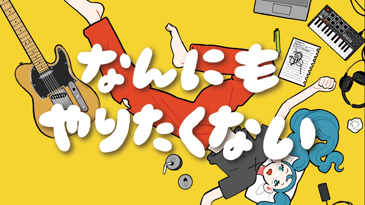 9作品目。<br><br>「なんにもやりたくない」<br><br>[作詞・作曲・編曲] ナサガシ ( <a href="https://twitter.com/nasagashi" target="_blank" rel="noopener nofollow">https://twitter.com/nasagashi</a> )<br>[絵・文字・animation] imid ( <a href="https://twitter.com/ne_nanikore" target="_blank" rel="noopener nofollow">https://twitter.com/ne_nanikore</a> )<br>[bass] 細川雅弘 ( <a href="https://twitter.com/masa_bass4" target="_blank" rel="noopener nofollow">https://twitter.com/masa_bass4</a> )<br>[movie] ナサガシ<br>[mix,mastering] anes ( <a href="https://twitter.com/anes_mixing" target="_blank" rel="noopener nofollow">https://twitter.com/anes_mixing</a> )<br>[lyrics engineer] Youth Hikara ( <a href="https://twitter.com/hikara_3" target="_blank" rel="noopener nofollow">https://twitter.com/hikara_3</a> )<br><br>[オフボーカル] (-3,-2,-1,0,+1,+2,+3,Master) ( <a href="https://piapro.jp/t/baZI" target="_blank" rel="noopener nofollow">https://piapro.jp/t/baZI</a> ) <br><br>[歌詞] ( <a href="https://youtu.be/FOfDW6w6L8I" target="_blank" rel="noopener nofollow">https://youtu.be/FOfDW6w6L8I</a> )<br>