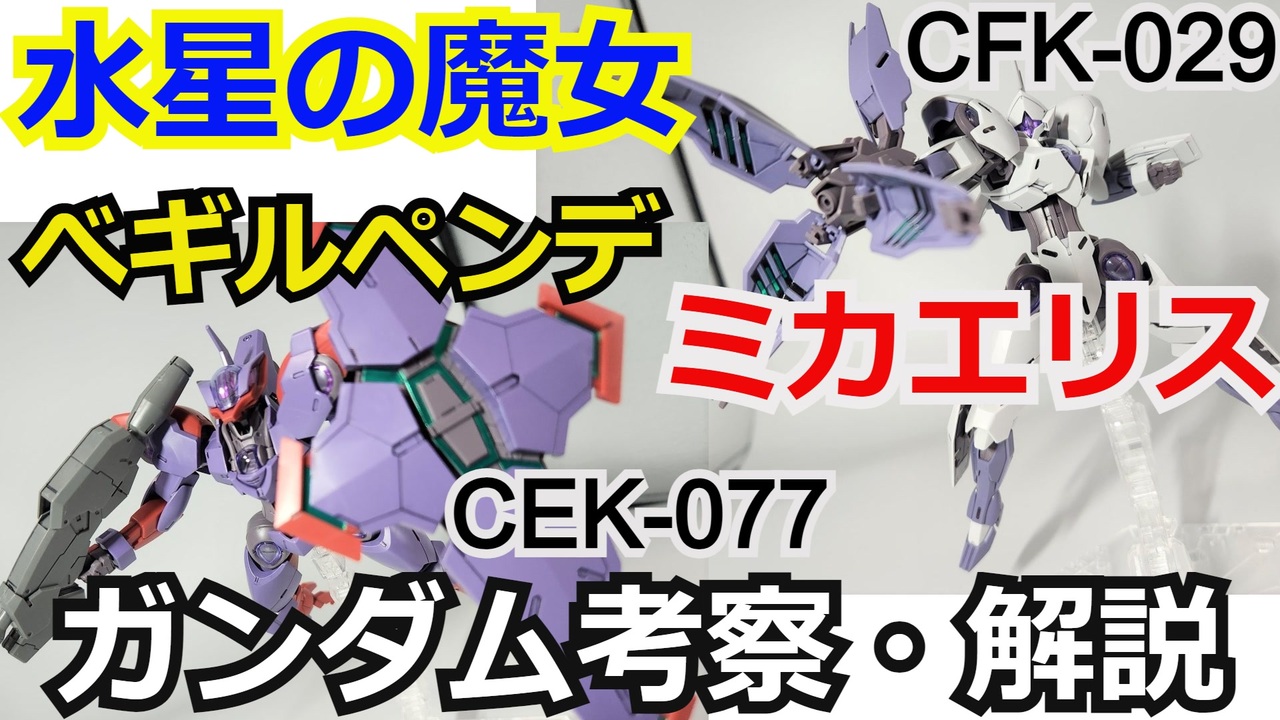 ゆっくり解説動画をご覧頂きありがとうございます。<br>水星の魔女解説動画になります<br><br>第7回 ミカエリス CFK-029<br>べギルペンデ CEK-077 についての<br>解説になりますので温かい目でご覧ください<br><br>どちらの機体もグラスレー寮生が<br>決闘で使用したモビルスーツ<br><br>◆チャンネル登録お願いします◆<br>シュウ部屋ちゃんねる【ガンダム解説】<br><a href="https://www.youtube.com/channel/UCuCnq009aboSCCpKPdEFKcg" target="_blank" rel="noopener nofollow">https://www.youtube.com/channel/UCuCnq009aboSCCpKPdEFKcg</a><br><br>youtubeに機動戦士ガンダム宇宙世紀MS、MA解説を先行投稿中<br><br>宇宙世紀兵器解説マイリスト→<a href="https://www.nicovideo.jp/mylist/72855560" target="_blank" rel="noopener">mylist/72855560</a><br><br>最新ガンダム解説マイリスト→<a href="https://www.nicovideo.jp/mylist/71096265" target="_blank" rel="noopener">mylist/71096265</a><br><br>ご意見ご感想は毎週行っている生放送へ<br>co4031807