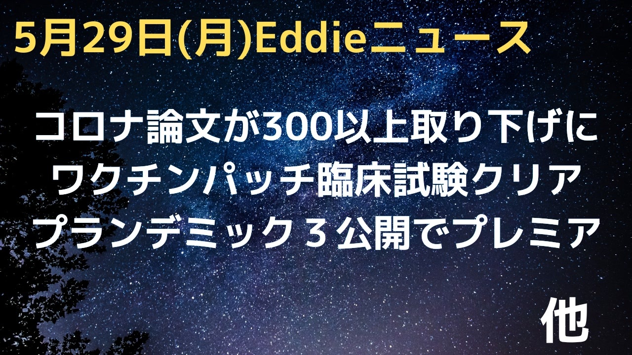 参考URL<br><a href="https://www.theepochtimes.com/over-300-covid-19-papers-withdrawn-for-not-meeting-standards-of-scientific-soundness_5293140.html?utm_source=partner&utm_campaign=TheChiefNerd&src_src=partner&src_cmp=TheChiefNerd" target="_blank" rel="noopener nofollow">https://www.theepochtimes.com/over-300-covid-19-papers-withdrawn-for-not-meeting-standards-of-scientific-soundness_5293140.html?utm_source=partner&utm_campaign=TheChiefNerd&src_src=partner&src_cmp=TheChiefNerd</a><br><br><a href="https://thefreethoughtproject.com/vaccine-safety-health/clinical-trial-of-bill-gates-funded-microneedle-vaccine-patch-is-successful" target="_blank" rel="noopener nofollow">https://thefreethoughtproject.com/vaccine-safety-health/clinical-trial-of-bill-gates-funded-microneedle-vaccine-patch-is-successful</a><br><br>プランデミック3<br><a href="https://thegreatawakeningmovie.com" target="_blank" rel="noopener nofollow">https://thegreatawakeningmovie.com</a><br><br><a href="https://t.me/covidtruthnet/8764" target="_blank" rel="noopener nofollow">https://t.me/covidtruthnet/8764</a><br />Eddieと申します。<br>少し引棒めいたニュースを集めて喋っています。<br>よろしくお願いします。<br><br>23時過ぎYouTubeライブ配信(マイペース配信中)<br>「Eddieのホンマやと思うニュース3」<br><a href="https://www.youtube.com/channel/UCKaftD6X-qeHC5Vd9CMCedw" target="_blank" rel="noopener nofollow">https://www.youtube.com/channel/UCKaftD6X-qeHC5Vd9CMCedw</a><br><br>ニコ生は毎週土曜21時半〜(もしくは日曜21時半〜)<br><br>twitter<br>@Eddie2travel<br><br>YouTubeライブ配信1000回記念グッズなど販売中<br><a href="https://suzuri.jp/Eddie-Homma3" target="_blank" rel="noopener nofollow">https://suzuri.jp/Eddie-Homma3</a><br><br>