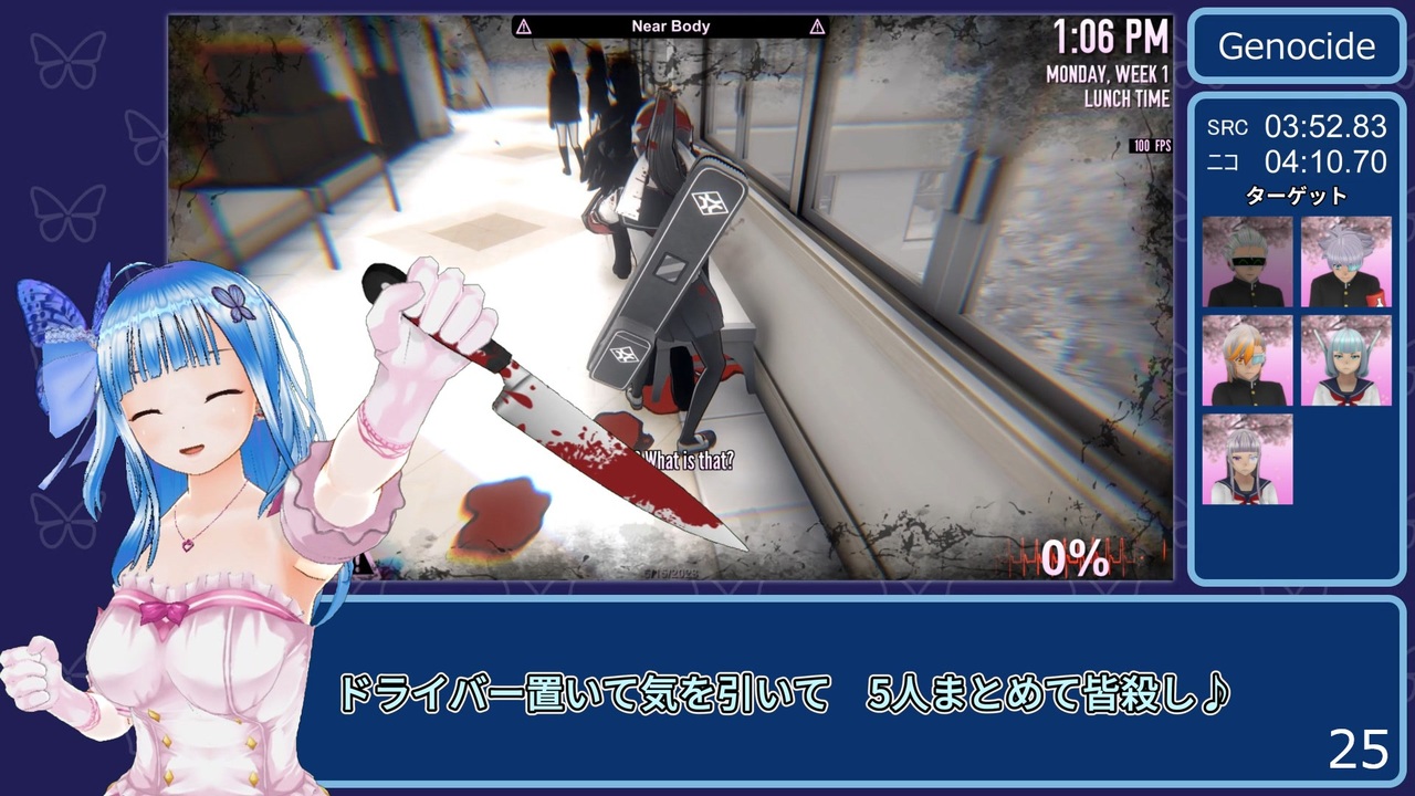 誓って殺しはやってません<br><br><strong><u>レギュレーション<br>ジェノサイドエンド達成<br>計測区間:空ファイル選択~エンディング開始まで<br>Speedrun仕様(SRC)…ロード時間は計測しない<br>ニコニコ仕様…ロード時間も計測</u></strong><br><br>(走ったビルド:5/15/2023ビルド)<br><br>無慈悲兄貴の記録→<a href="https://youtu.be/ubLwVKcl_Cg" target="_blank" rel="noopener nofollow">https://youtu.be/ubLwVKcl_Cg</a><br><br>Speedrun仕様のタイマー付けただけ版→<a href="https://youtu.be/3qlXohN7G80" target="_blank" rel="noopener nofollow">https://youtu.be/3qlXohN7G80</a><br><br>前回のジェノサイド→<a href="https://www.nicovideo.jp/watch/sm42266363" class="watch">sm42266363</a><br>前前回のジェノサイド→<a href="https://www.nicovideo.jp/watch/sm41862677" class="watch">sm41862677</a><br>前前前回のジェノサイド→<a href="https://www.nicovideo.jp/watch/sm41301301" class="watch">sm41301301</a><br>前前前前回のジェノサイド→<a href="https://www.nicovideo.jp/watch/sm40480411" class="watch">sm40480411</a><br>前前前前前回のジェノサイド→<a href="https://www.nicovideo.jp/watch/sm39458126" class="watch">sm39458126</a><br><br>前→<a href="https://www.nicovideo.jp/watch/sm42266363" class="watch">sm42266363</a><br>次→<a href="https://www.nicovideo.jp/watch/sm42336687" class="watch">sm42336687</a><br>RTAマイリス→<a href="https://www.nicovideo.jp/mylist/74656323" target="_blank" rel="noopener">mylist/74656323</a><br><br><u>使用させていただいた素材・ソフト等</u><br>AviUtl<br>A.I.VOICE 琴葉葵<br>CeVIO AI 夏色花梨 トークボイス<br>COM3D2(VAS使用)<br><br>その他お借りした素材はコンテンツツリーをご覧ください。<br /><br>ついった(旧Twitter):<a href="https://twitter.com/tsubame_sizimi" target="_blank" rel="noopener nofollow">https://twitter.com/tsubame_sizimi</a>